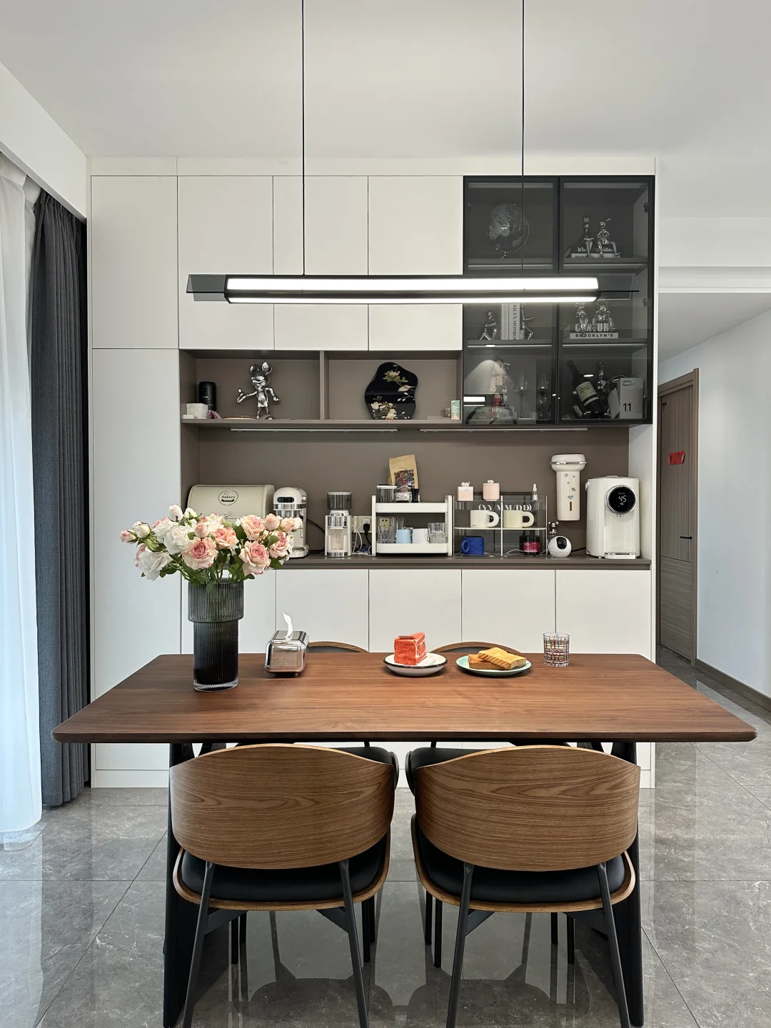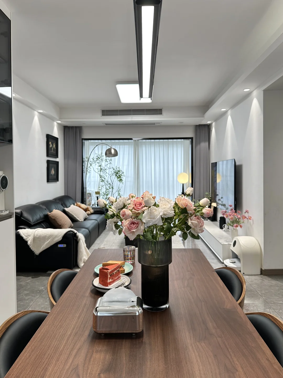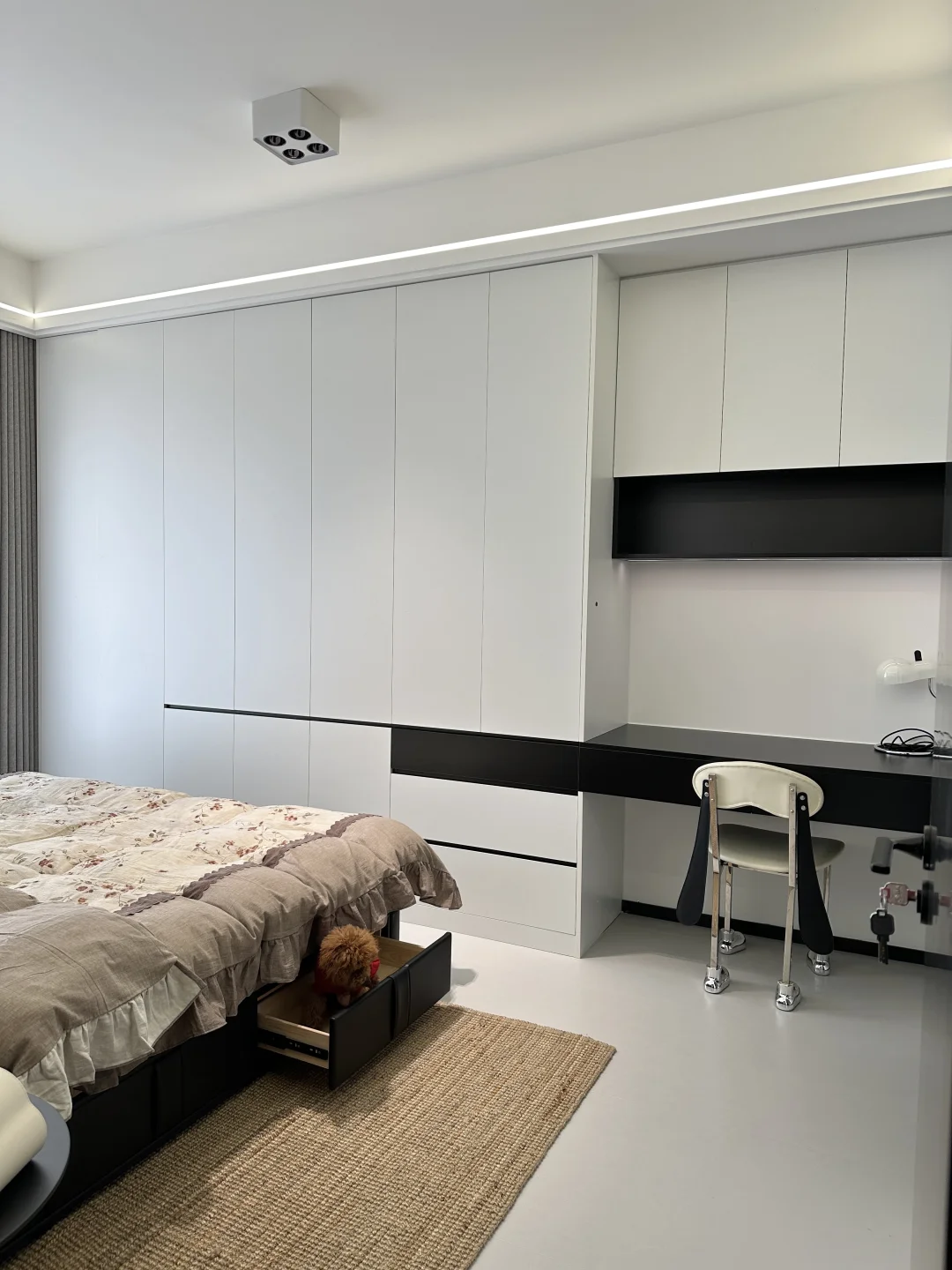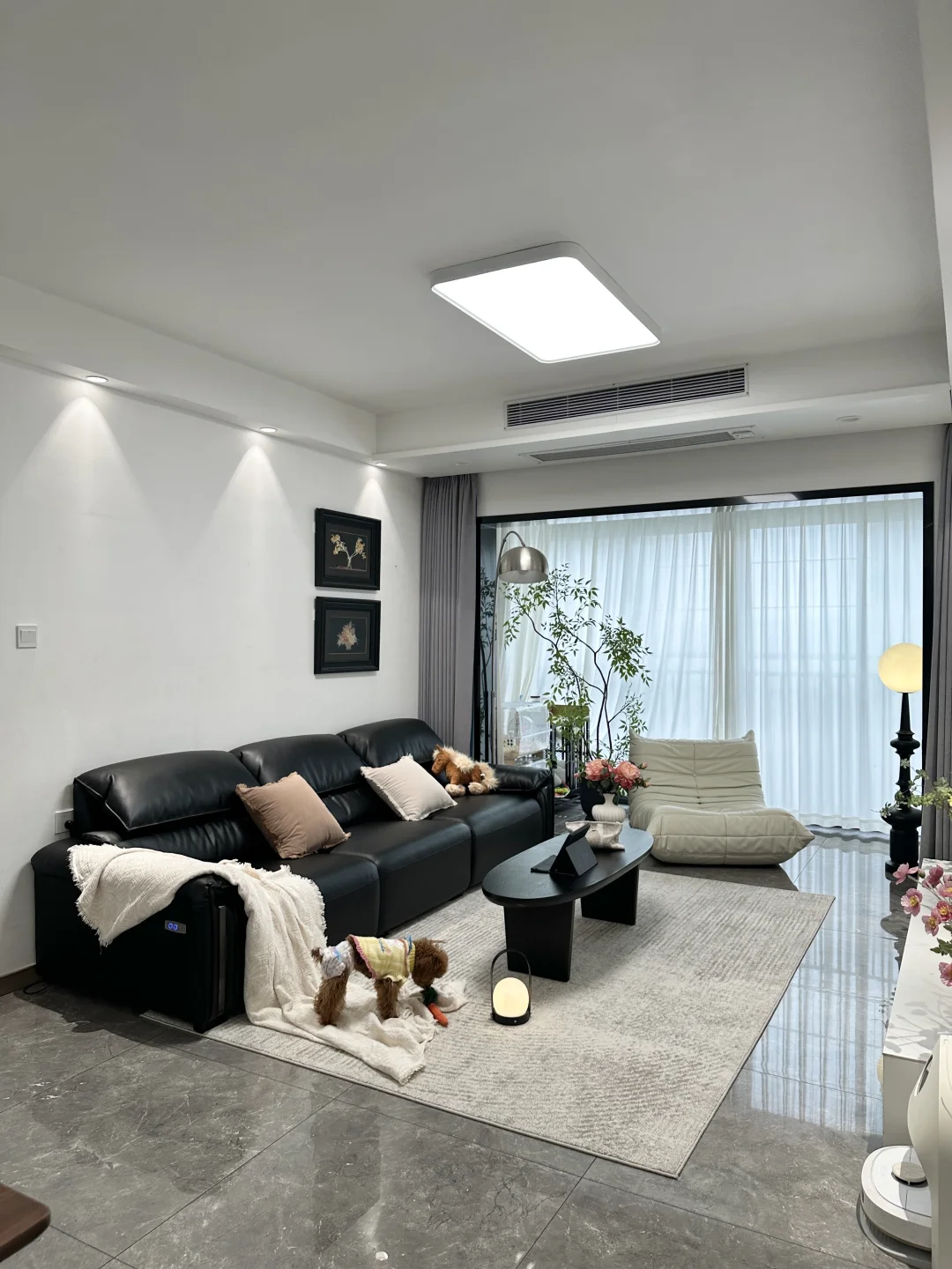 图一是交付的精装房 图二是9w搭配后的样子 基础硬装基本没改,全靠软装支棱起来 封了阳台后就开始入家具,精装房就是省心[偷笑R] 全屋定制2.3w~部分家电精装自带 9w预算搭配120平精装房绰绰有余哦 喜欢黑白灰风格的姐妹可以抄作业啦❤️