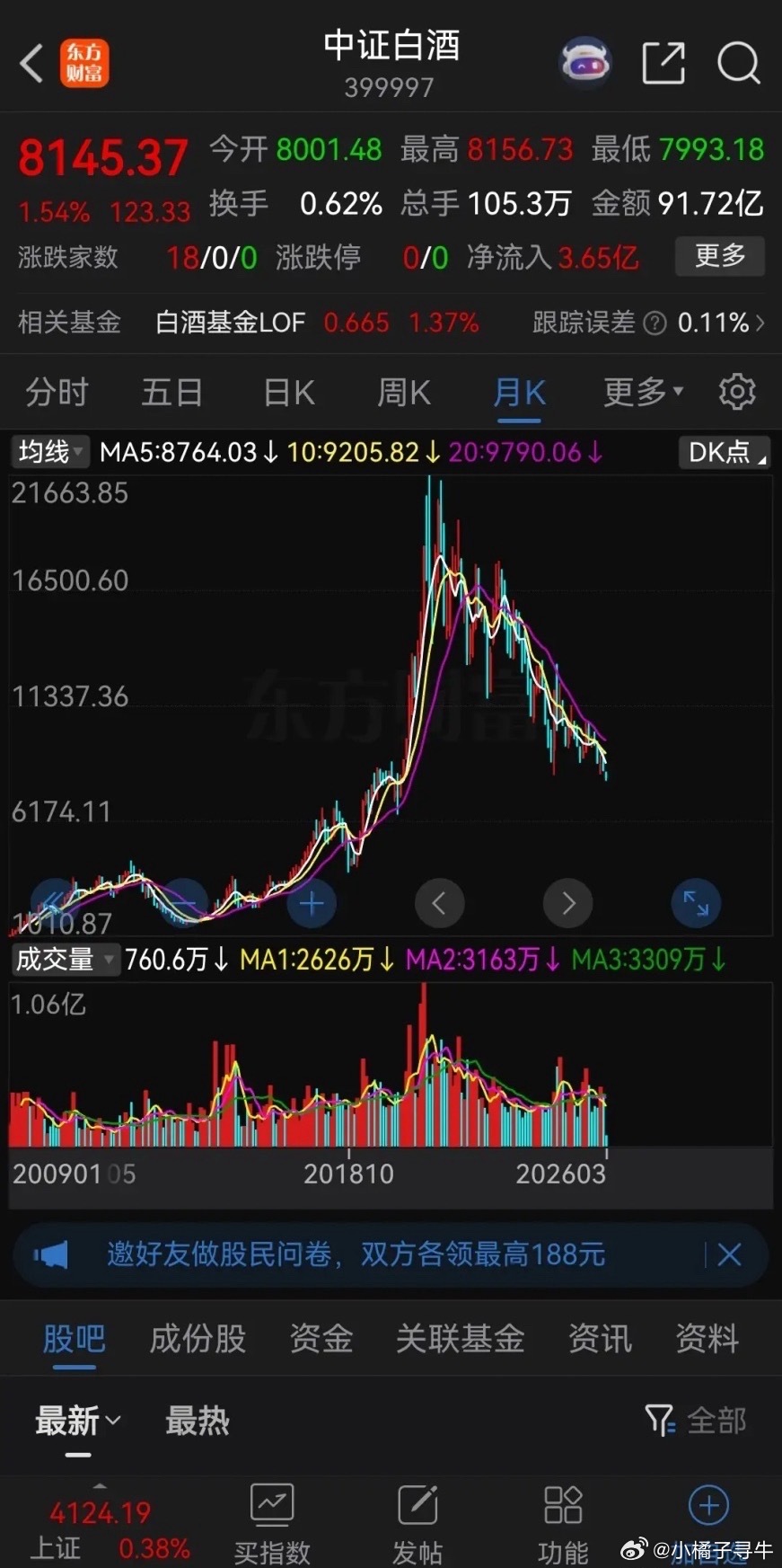 中证白酒又创新低了!白酒这几年的走势表现确实很差,不管你信不信,这是个事实!
