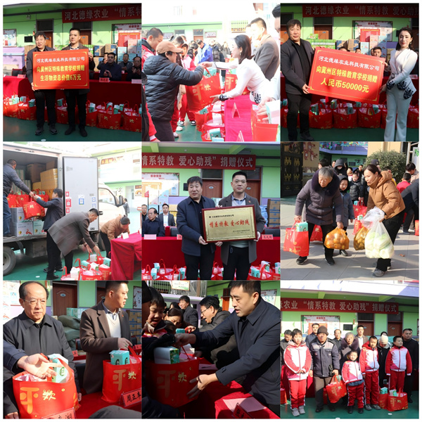 区教育局党组成员、副局长辛旺致辞:对各爱心企业和长期以来为冀州区特殊教育学校捐款捐物的爱心人士、关心支持残疾人教育事业发展的社会各界表示感谢,希望特教学校坚持立德树人,提高政治站位,促进特殊儿童少年德智体美劳全面发展,努力提高特殊教育质量,让特殊儿童通过学校教育能较好融入正常社会生活,不辜负社会各界的殷切期望。河北德缘农业科技有限公司董事长周正丰代表捐赠企业和个人发言:捐赠活动不仅是企业履行社会责任的体现,更是弘扬中华民族扶贫助残的美德。我们愿意用企业的力量,让希望的光芒照亮孩子们的前程。希望我们的爱心能够让更多企业和团体倾注更多的力量关注这些孩子,让孩子们同在一片蓝天下成长。河北德缘农业科技有限公司首席顾问、原衡水职业技术学院院长郭来湖讲话:爱心企业和爱心人士的善举不仅为残障孩子们带来了物质上的帮助,更在他们心中种下了爱的种子。区委常委、统战部部长张志勇最后总结发言:捐资兴教、爱心助学是一项功在当代,利在千秋的事业。河北德缘农业科技有限公司等爱心企业、爱心人士奉献爱心,向冀州区特殊教育学校的捐赠,必将大大改善孩子们的学习、生活条件。此项活动的开展,既是北德缘农业科技有限公司等爱心企业、爱心人士积极履行社会责任的举措,也是关心支持教育事业,支持公益的一项具体行动。同时,更相信,通过今天的活动,北德缘农业科技有限公司等爱心企业、爱心人士的善举义行一定会带动更多的人来关注教育,关爱特教学校的学生!希望冀州区特殊教育学校全体师生把他们的爱心化作动力,建设好学校,用优异的育人成绩回报社会各界的厚爱。冀州区特殊教育学校校长耿立峰致感谢词:今天是大寒节气,是一年中最寒冷的一天。但是今天却是我们全校师生感到最温暖的一天。各位爱心企业对我校孩子们的捐赠,也是对我们的一种鞭策。社会都在关心、关爱我们这些孩子,我们更没有理由不去爱他们,更没有理由不为他们的成长鞠躬尽力。让我们一起努力,用我们的爱心和合力,去温暖他们、去呵护他们、去培养他们,让这群孩子多增长知识、提高能力,能够做到自立自强、自食其力,勇敢地去追求属于他们自己的充满希望的美好生活。