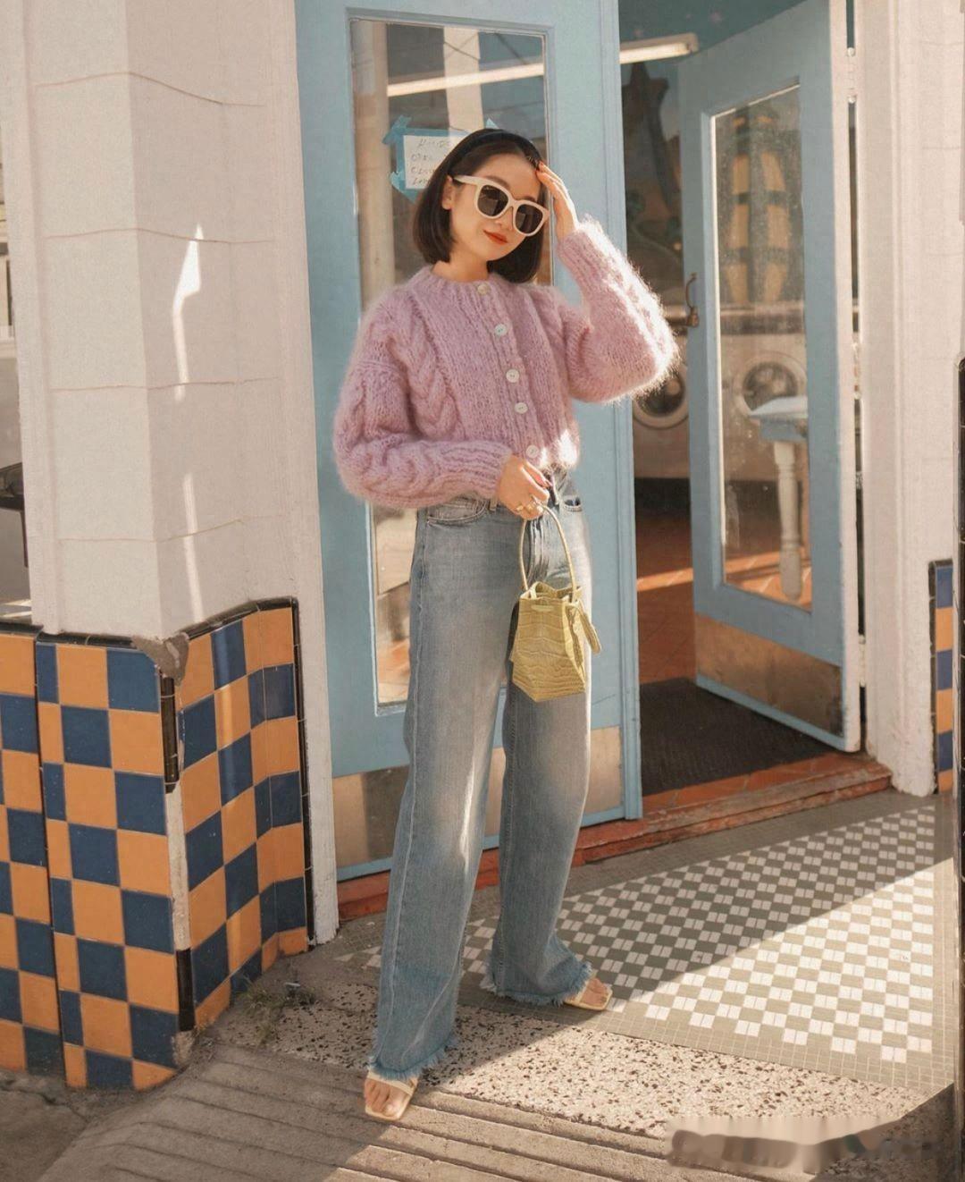 奶奶衫的"百搭"特质源于其"可盐可甜"的双重属性。搭配碎花裙时,它能化身温柔淑女;搭配牛仔裤时,又能切换成休闲模式。但真正的穿搭高手往往懂得"适度留白"——比如选择V领奶奶衫避免沉闷,或是在袖口处微卷增加呼吸感。这种对细节的精准把控,才是让基础款焕发高级感的关键。
