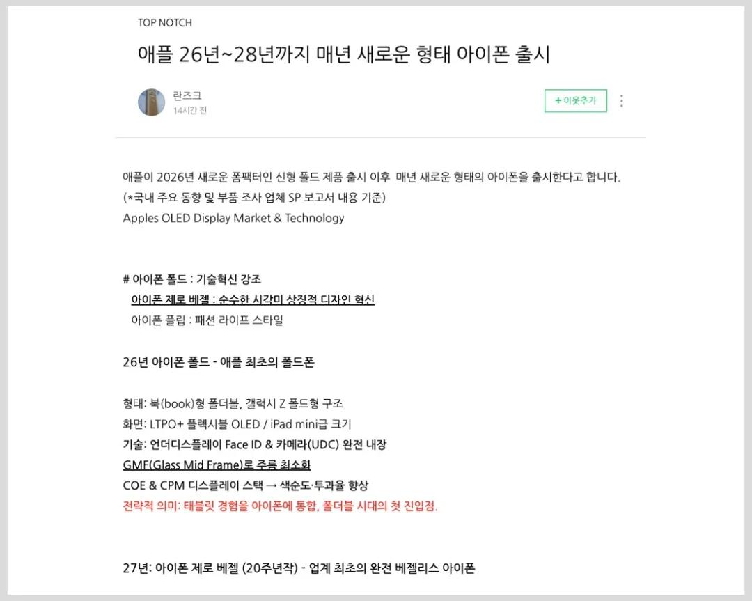 据称,今年新推出的超薄机型iPhone Air只是前菜,到2026年,苹果将带来首款折叠屏iPhone,采用的是左右对折的“大折叠”形态;