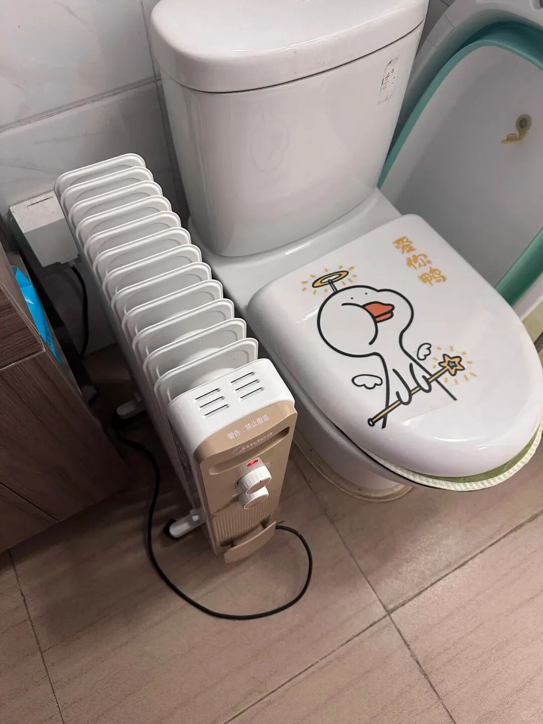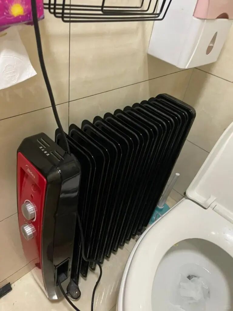 直到见了网友@啾啾是只猫 的办法,在洗澡前 10 分,把油汀搬到卫生间,调至中档进行预热,卫生间空间小,温度上升的贼快。