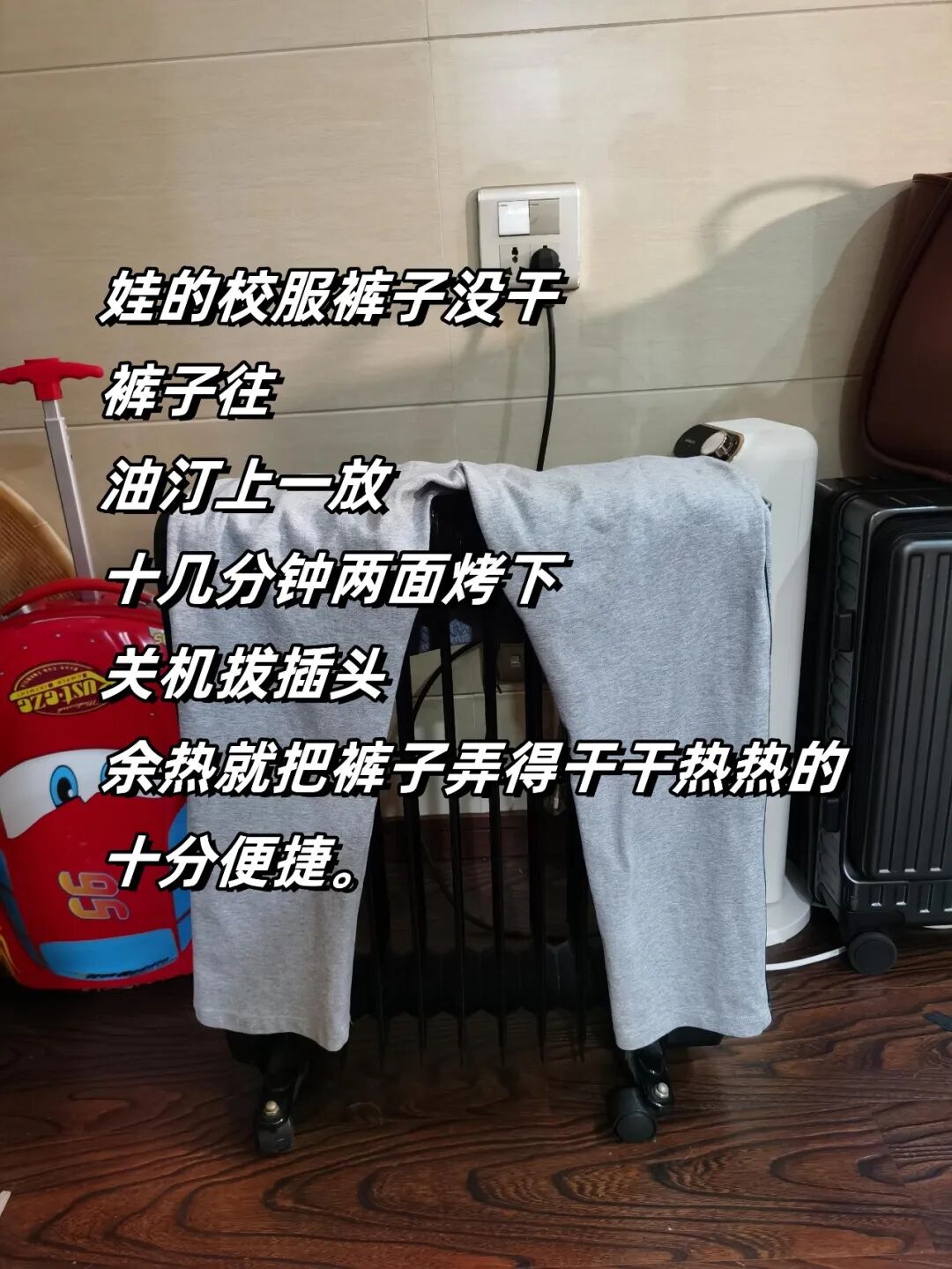 很多网友家中,也是这样,每逢阴雨天,都依靠油汀来解决衣服晾晒的问题,真是帮了大忙。