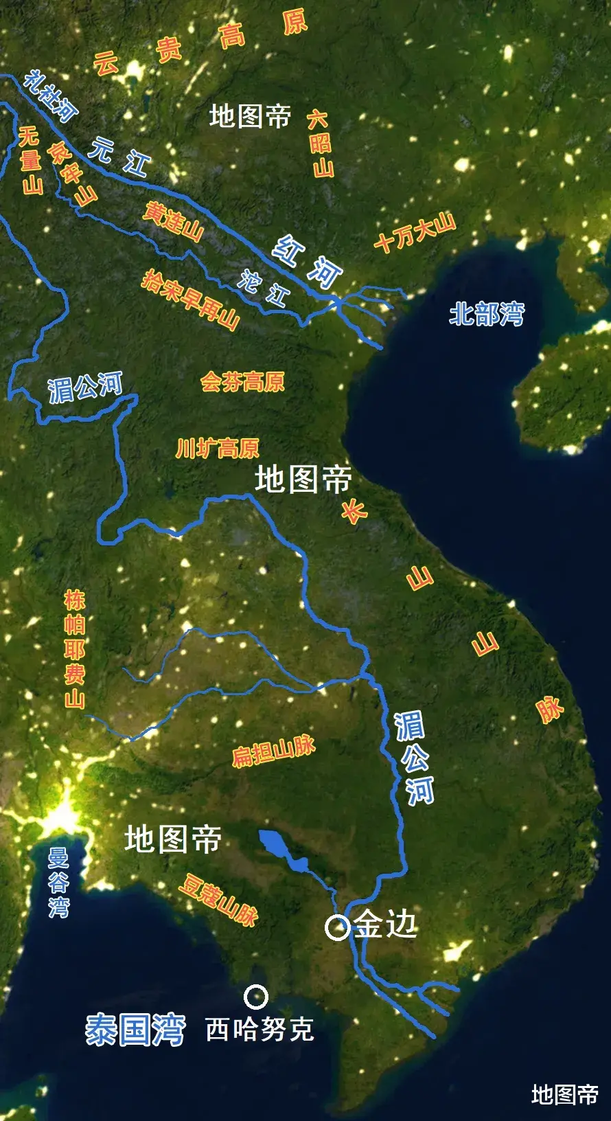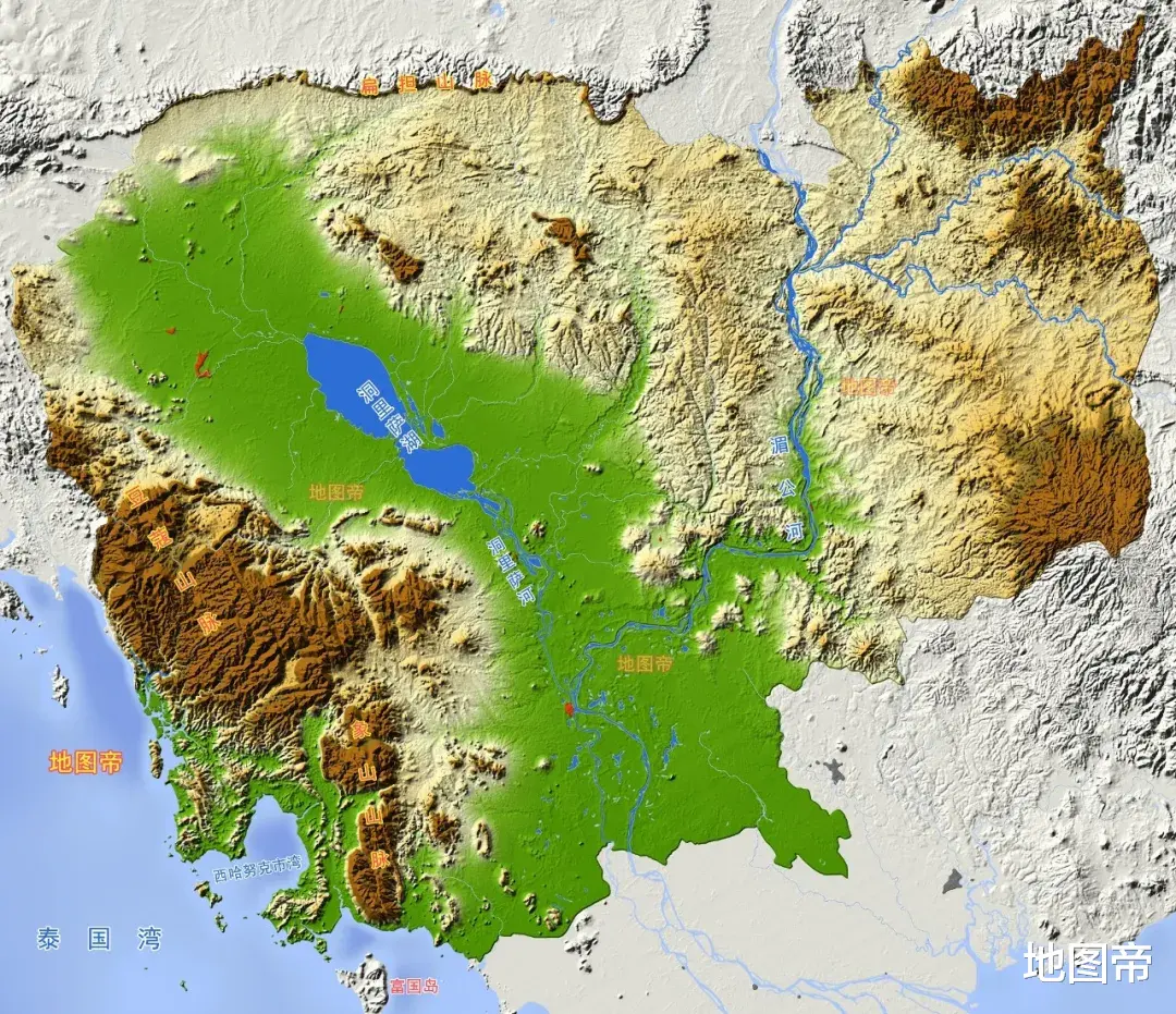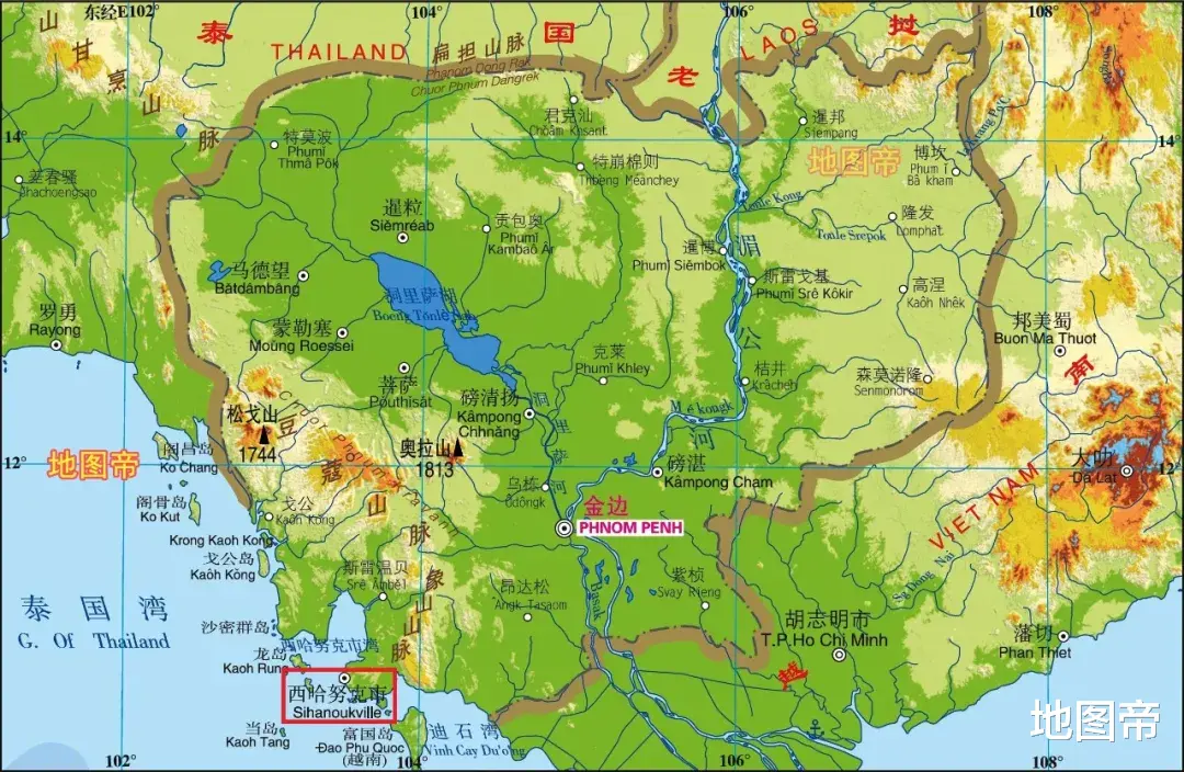 柬埔寨大多数河流,都汇入了湄公河,在越南入海。柬埔寨虽然海岸线也不少,但海边有豆蔻山脉、象山山脉阻挡,缺乏大型河流作为支撑,港口注定有先天不足,西哈努克港就是在这种地理环境下,成为柬埔寨第一大港的。