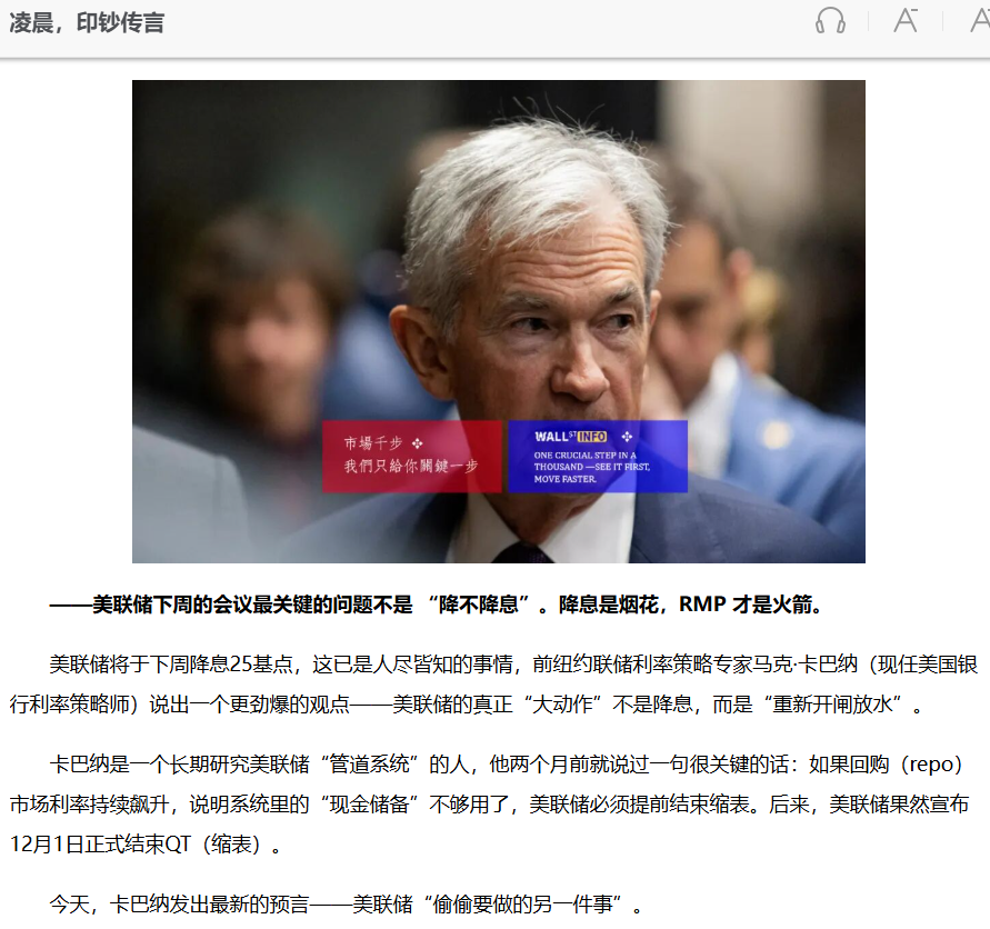 这个卡巴纳是前纽约联储利率策略专家,现任现任美国银行利率策略师,他更懂美联储的“水管结构”。降息本身,市场反应可能有限。真正的刺激点是RMP+termrepo,稳住年末流动性。美联储表面上结束了印钞机,实际上正在重新热身,准备再开一轮……至于为什么要这么干,看看这张图就知道了: