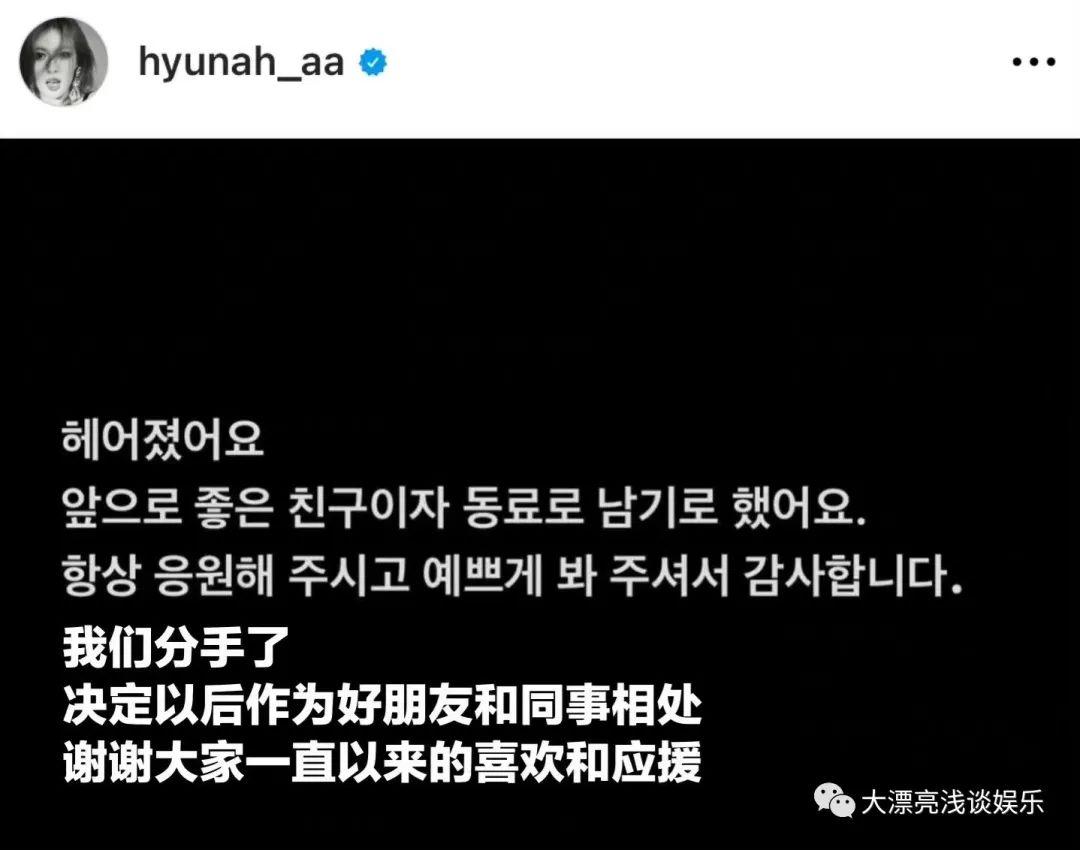 11月30日,金泫雅发文宣布和金晓钟分手了,表示以后要成为好朋友和同事,本来还以为两个人永远不会分手呢。不少网友表示,虽说是分手了,但好歹也是甜过的。