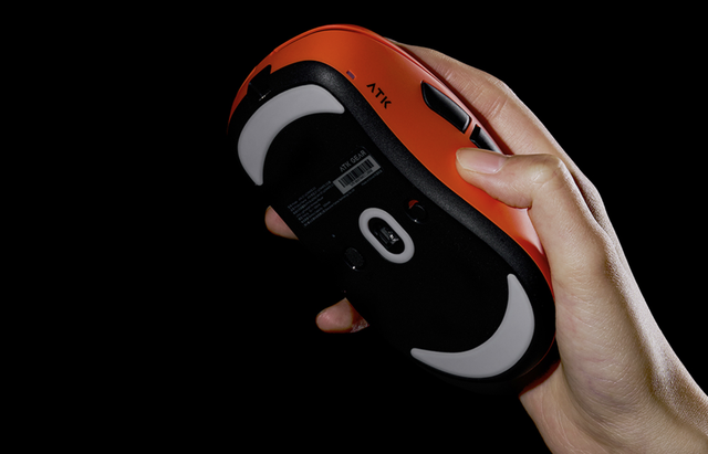 值得一提的是,为了平衡轻量化与耐用性,ATK在机身关键部位采用了高强度尼龙材料,同时底部配备高含量PTFE双层防凹陷大脚贴 —— 这种脚贴不仅滑动丝滑,还能避免长期使用后的 “凹陷变形”,使用寿命比普通脚贴长3倍,适配布垫、树脂垫等多种材质鼠标垫。