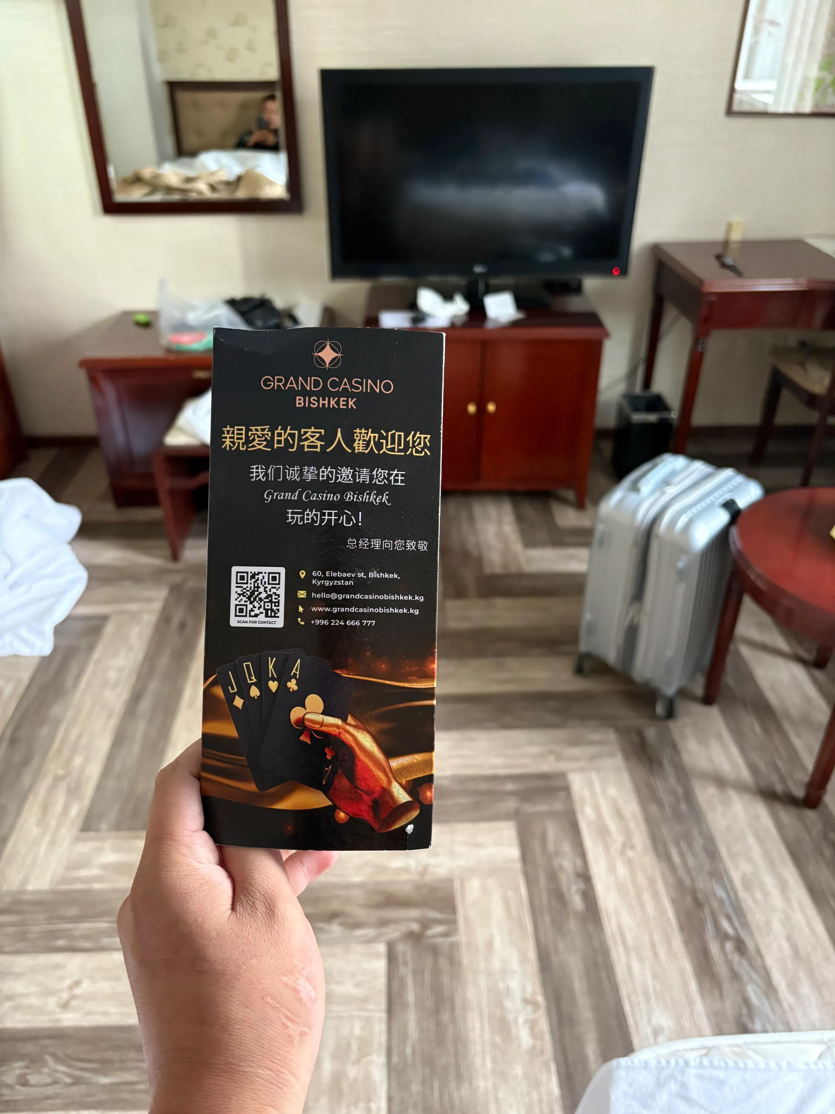 晚上十一点我们到了贾拉拉巴德,本来这里是可以住宿的,梁公子却执意赶往一百多公里外的奥什,原因无它,奥什的上海城酒店楼上是个赌场。到了奥什的上海城酒店住下,已经是凌晨两点了,本来想直接睡下。小飞却非要拉着我去楼上转转,我发现这几天小飞被梁公子带的已经上道了。