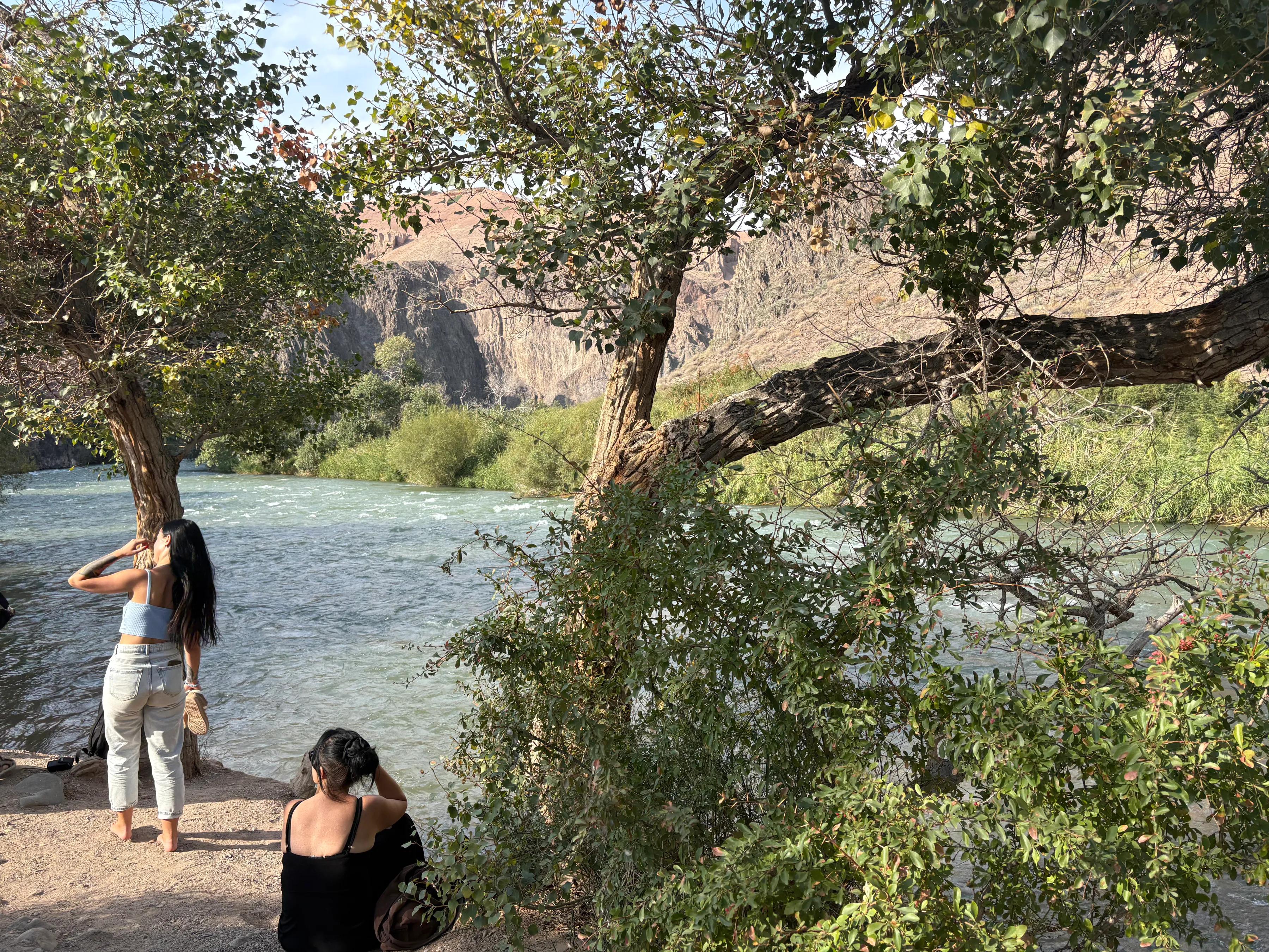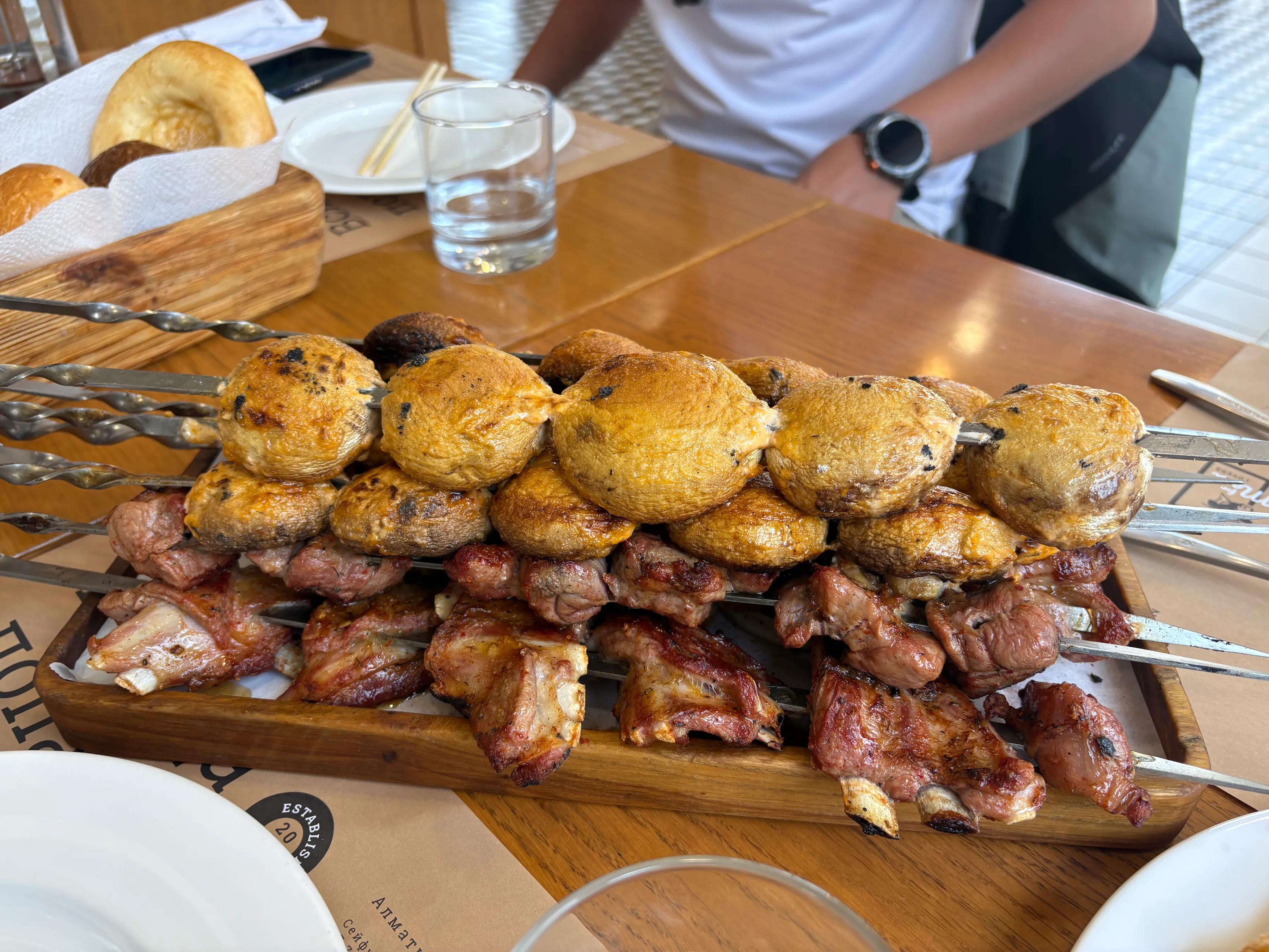 吃完午饭前往第一个行程点-恰伦大峡谷,今天到的时间比较早,我也跟着队员们进去转了转,原来都是在外面看,今天进去转了转感觉还不错,尤其是里面的小河边坐一坐还是蛮舒服的。从恰伦出来,我们就往阿拉木图方向走,路上买个甜瓜吃,感觉不如往日的甜。到了阿拉木图,天还没有黑,这是往常不敢想象的。我们住在了潘菲洛夫公园附近的酒店,找了个当地特色餐厅吃晚餐,说实话,哈萨克的物价可不低:五个人的晚餐吃了一千多人民币,还没有喝酒。