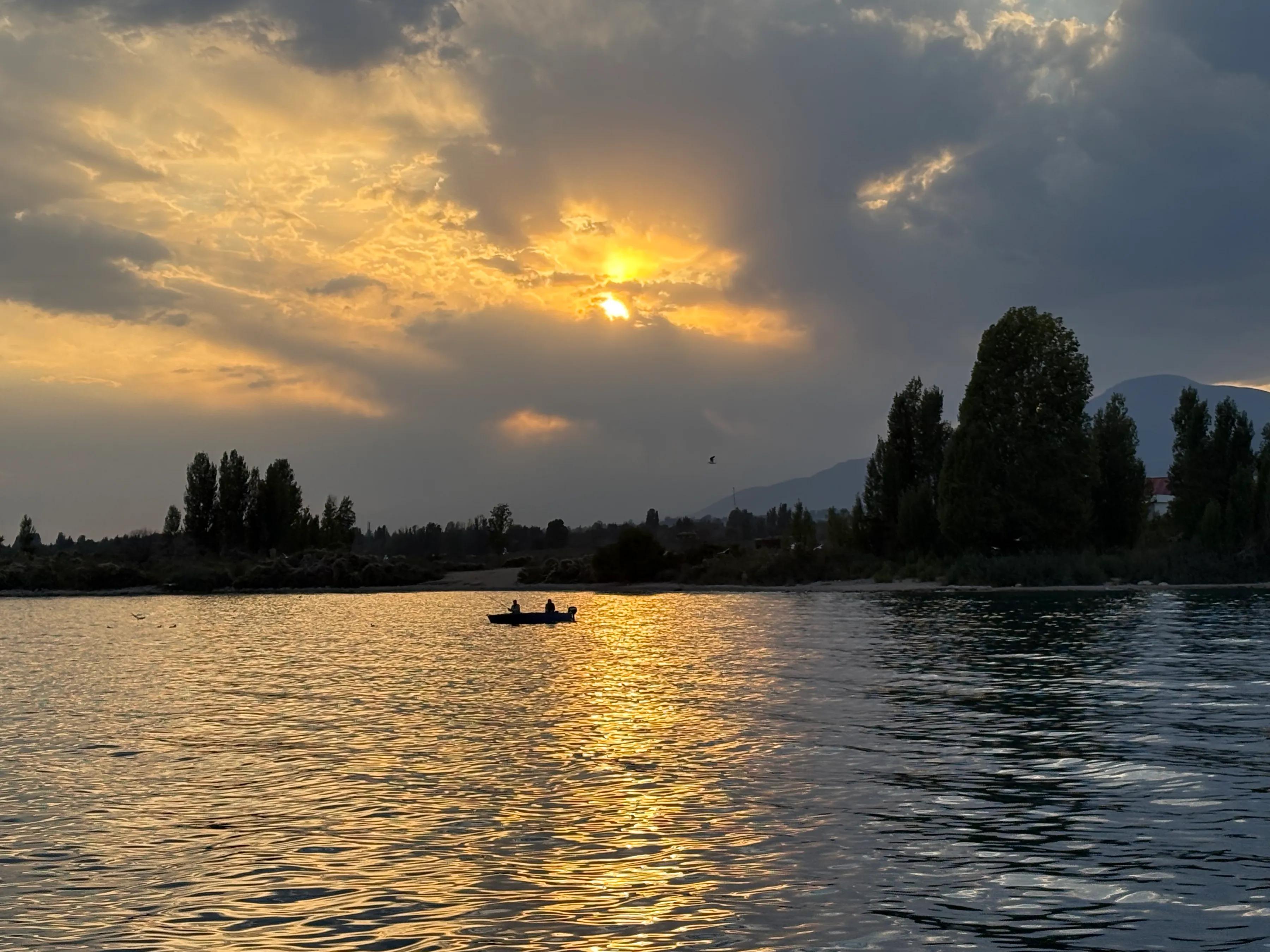 11号从伊塞克湖西岸出发,我们的目的地是吉尔吉斯最南面的城市-奥什,这是一段艰难的旅程。路程长,路也不好走。我们按照之前的经验配合谷歌地图走上了一条错路,越走越慌。好在也不是没有收获,在这条荒野小路的尽头,我们碰到了几个在这里钓鱼的钓鱼佬,他们的车坏了,需要打气。我用随车气泵帮他们把轮胎打了气,他们跟着我们一起往外走,也算是做了件好事。