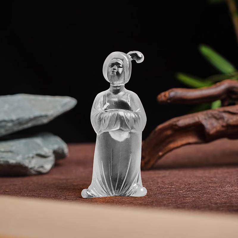 在琳琅满目的工艺品中,一件古法琉璃唐侍女摆件静静伫立,瞬间抓住了众人的目光。初见它时,仿佛时间凝固,目光再也无法挪开。