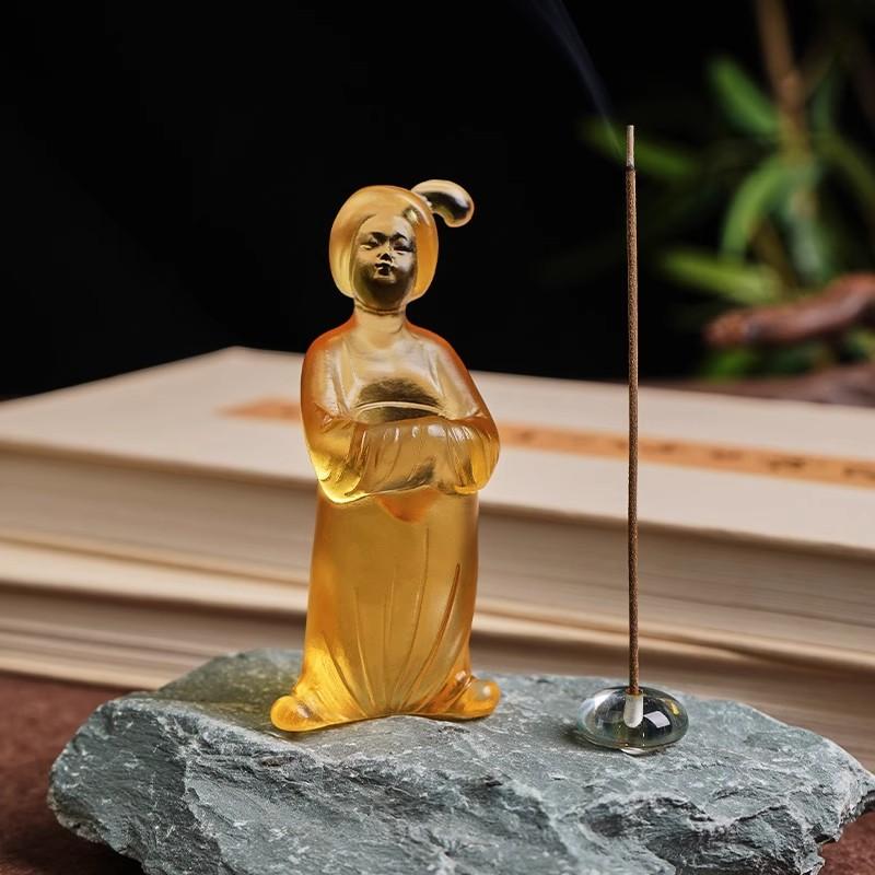 这件古法琉璃唐侍女摆件,是传统与创新碰撞的结晶。唐侍女元素,是对历史文化的回溯与致敬;古法琉璃工艺,是对传统技艺的坚守与传承 。当二者相遇,便产生了奇妙的化学反应。