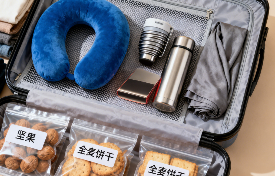 舒适的护颈枕和眼罩:一个能有效支撑颈部的U型枕,可以极大缓解旅途中的肌肉紧张。一个遮光眼罩能帮你随时随地创造黑暗的休息环境。