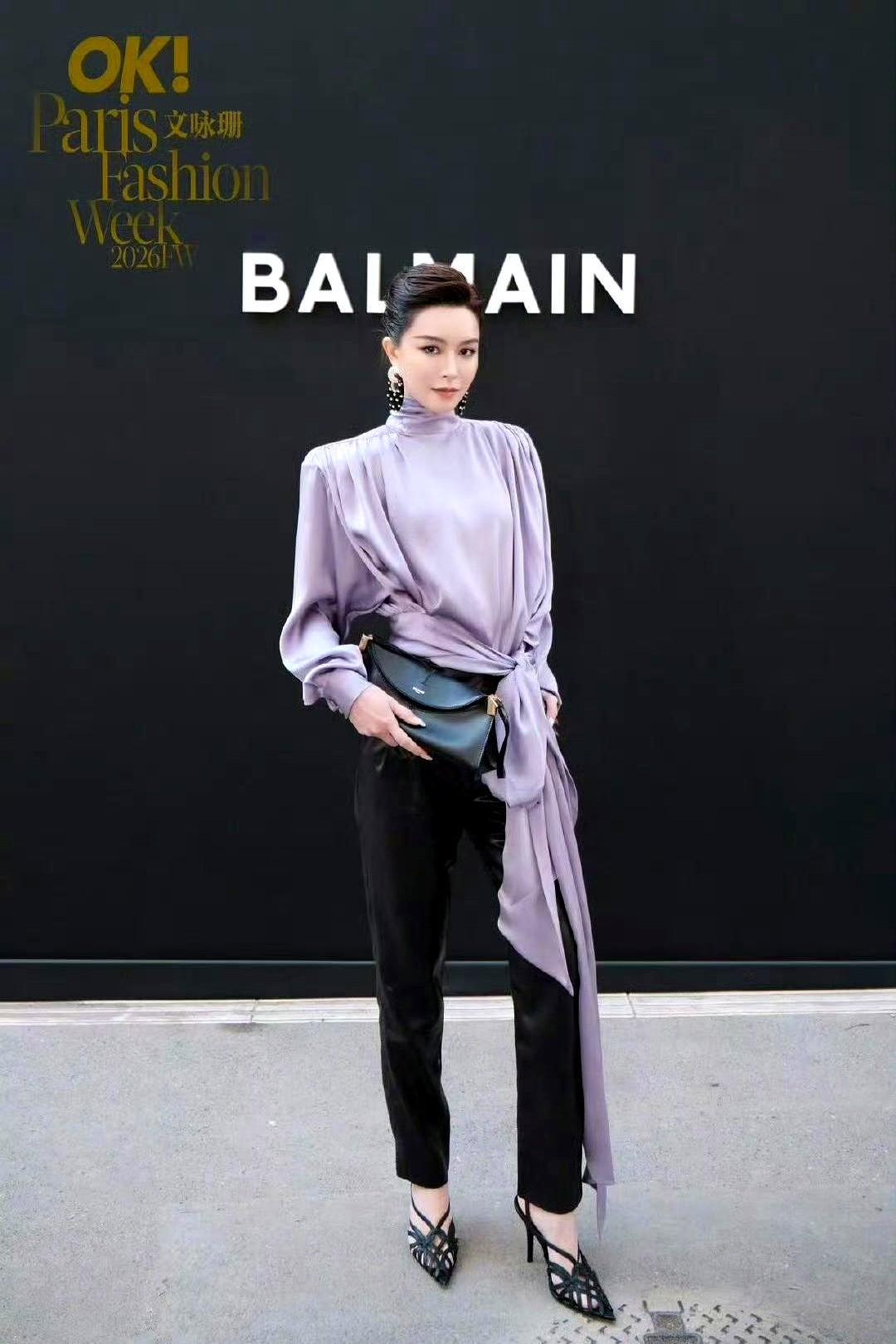好多人说文咏珊这身衣服像塞了个衣架,真的看不懂吗? 在巴黎时装周,她穿了件香芋紫的垫肩西装,肩膀宽得夸张,被网友戏称“太平洋宽肩”。 说丑的人可能没get到点。这种极致宽肩是Balmain的标志,玩的就是力量感和建筑美学。肩宽腰细,形成倒三角,视觉冲击力拉满。 这身造型不是谁都能撑起来的。全靠文咏珊天生的直角肩和紧致身形,才把这种先锋设计穿出了霸气和高级感。秀场要的就是这种态度,而不是日常的邻家女孩。 看得懂的叫时尚,看不懂的叫奇怪,很正常。
