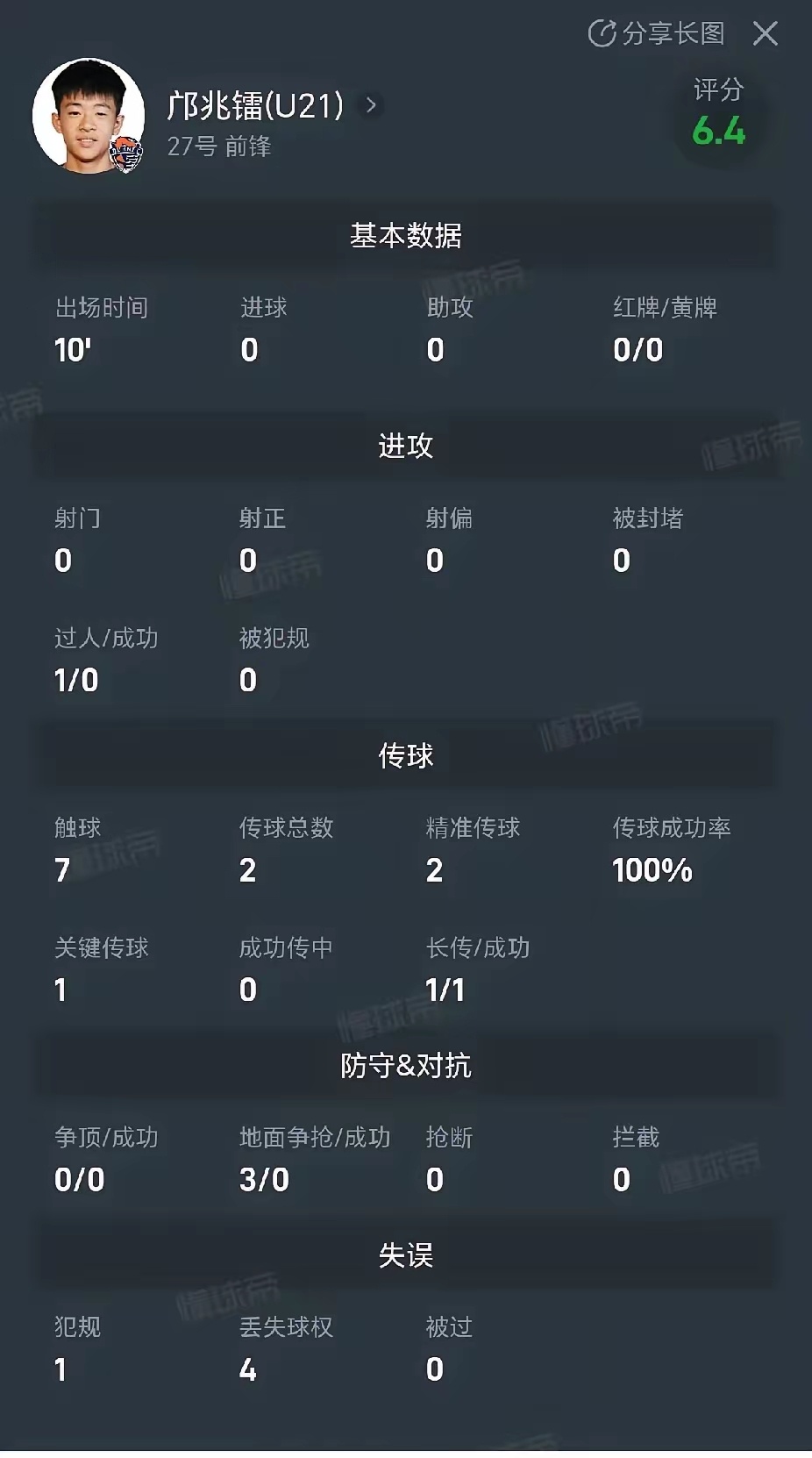 董路干儿子邝兆镭首秀评价相当高!邝兆镭中超首秀