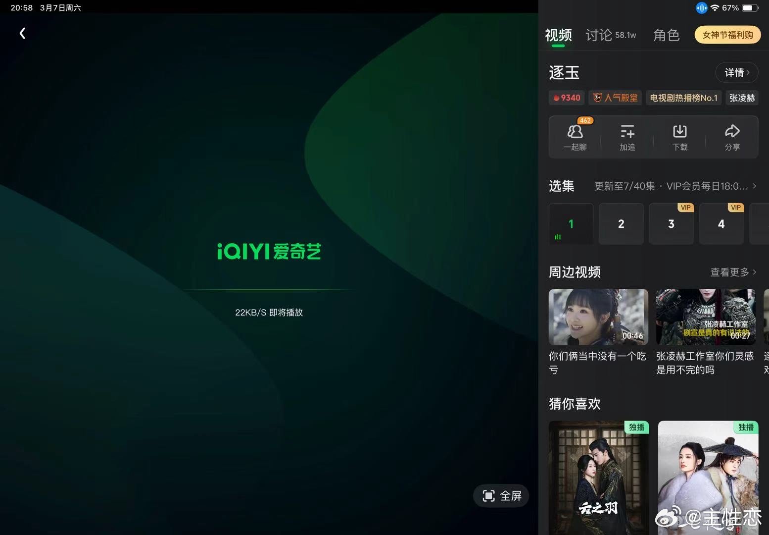 逐玉真爆了,爱奇艺9300,腾讯2万8,都差一点破万,单平台估计就破了,双平台分流了