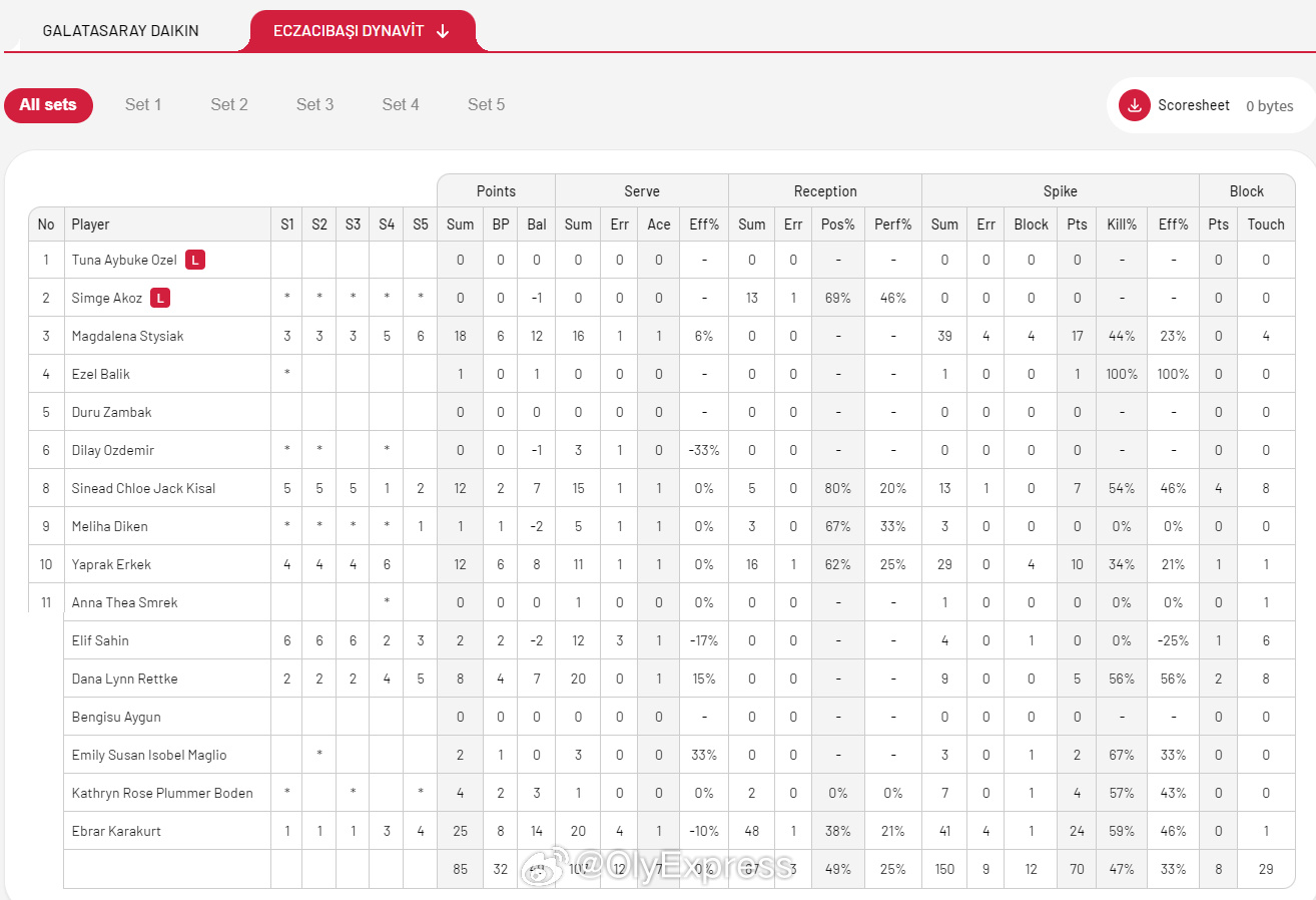 【土超女排加拉塔萨雷2-3伊萨无缘四强 王媛媛15分】中国排球留洋动态国际排坛战报速递 3月7日,土超女排第25轮暨常规赛倒数第二轮,加拉塔萨雷主场苦战五局,以2-3(23-25/25-22/25-23/18-25/9-15)不敌伊萨奇巴希,提前无缘四强。卡鲁塔苏18分、希拉16分、王媛媛15分(15扣10中1发4拦)、居维利11分,卡拉库尔特25分、斯蒂西亚克18分、杰克和厄尔科克各12分。