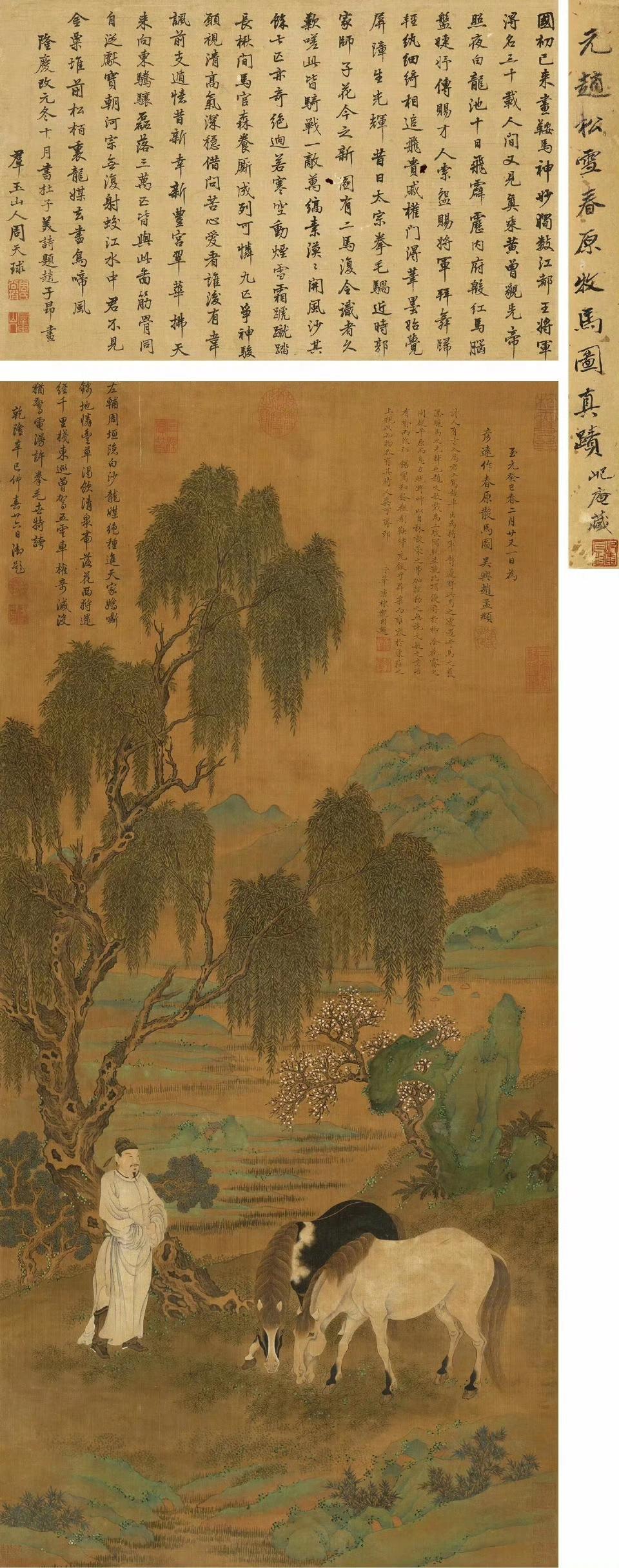 明 陈栝 献岁祥霙轴 明 仇英 春山吟赏图 明 钱贡 太平春色图 明 沈周 汲泉煮茗图 元 孟頫 富春垂钓图 元 孟頫 春原牧马图 清 华岩 梅竹春音图 元 陆广 五瑞图轴图 明 钱谷 杏花喜鹊轴