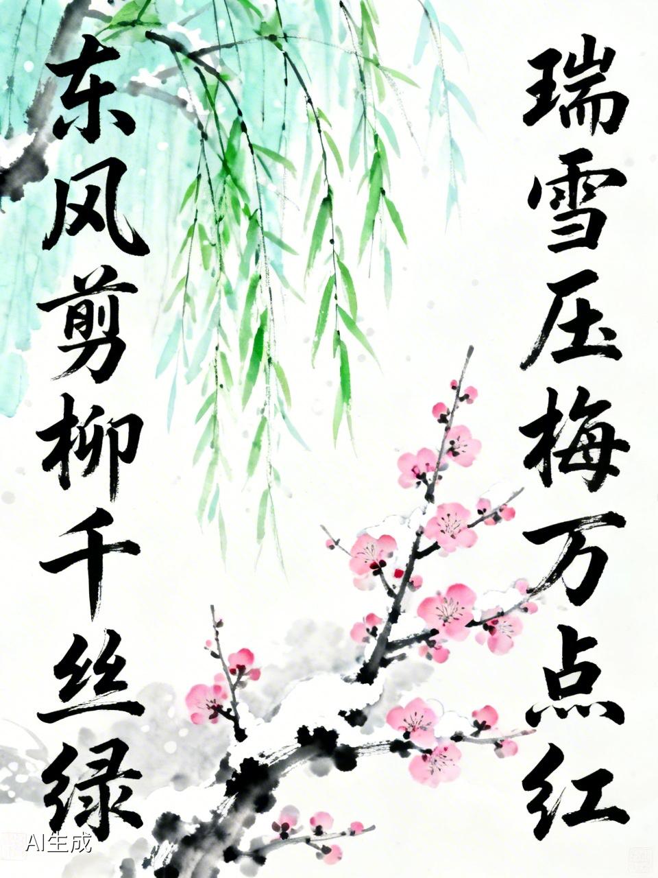 上联:东风剪柳千丝绿 下联: 瑞雪压梅万点红