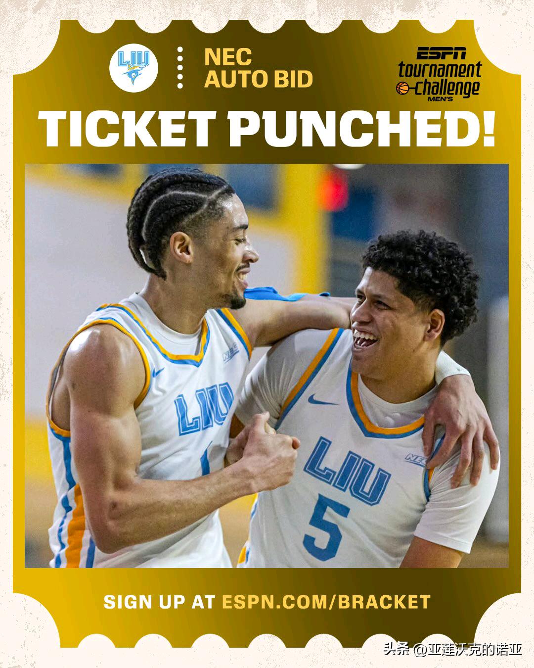 长岛大学晋级NEC联盟冠军赛,由于决赛对手Mercyhurst正处于进入D1的四年过渡期而没有资格参加NCAA锦标赛,所以Long Island自动获得疯狂三月 席位,欧文教父Rod Strickland四年前接手球队,第一年赢3场,第二年赢7场,第三年赢17场,第四年取得成功,队内拥有中国内线李信仪Xinyi Li。