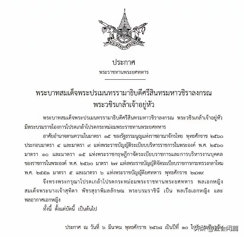 苏提达已经是目前泰国唯一拥有陆、海、空三军上将军衔的女性。 在泰国,王室成员拥有军衔是惯例。国王是国家元首兼三军最高统帅,授予王后军衔,象征着王室对军队的绝对领导,也强化了军队对王室的忠诚。 苏提达并非“空降”。她早在2010年就进入皇家卫队,从少校一路晋升,拥有超过15年的军龄,军衔是苏提达在王室权力结构中的“护身符”。拥有三军上将军衔,意味着她在王室面临特殊时期时,能凭借军衔地位镇抚军方、稳定局势。 诗丽吉王太后,就是苏提达的婆婆,也曾拥有三军军衔。 帕差拉吉帝雅帕公主,思蕊梵纳瓦瑞公主,都拥有陆军上将军衔。