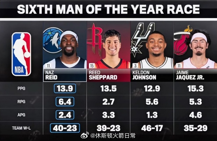NBC列本赛季最佳第六人四大候选:里德 谢泼德 凯尔登 小海纳兹·里德 球队战绩40胜24负 场均13.9分6.4篮板2.4助攻