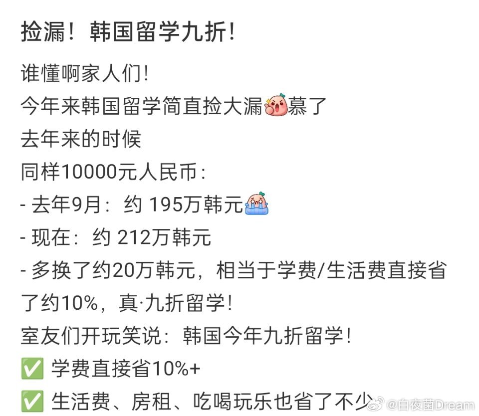 在韩国直观感受到了人民币升值,九折留学。