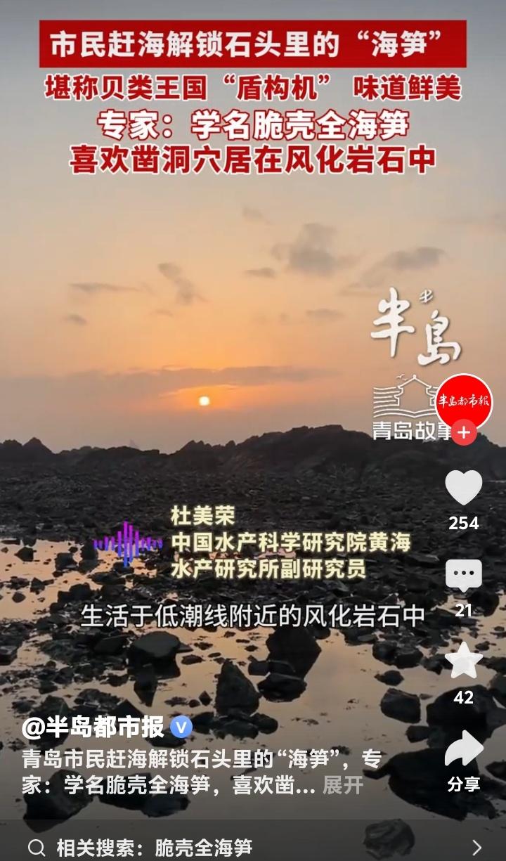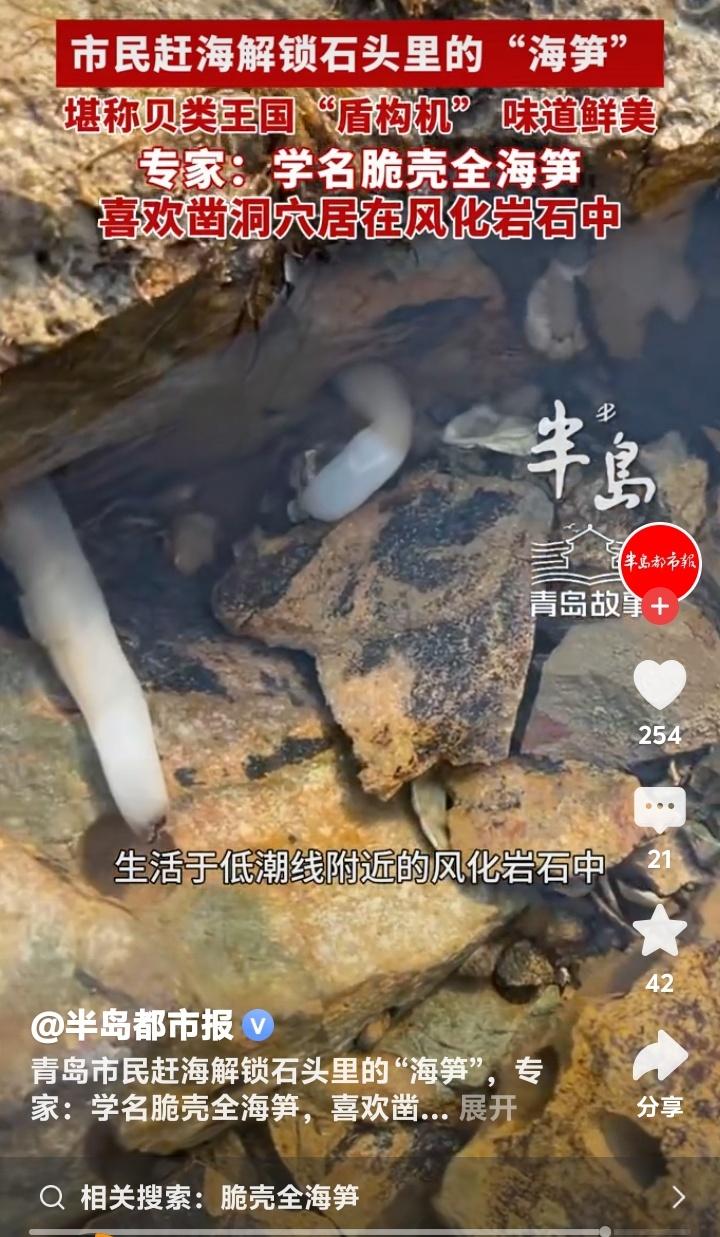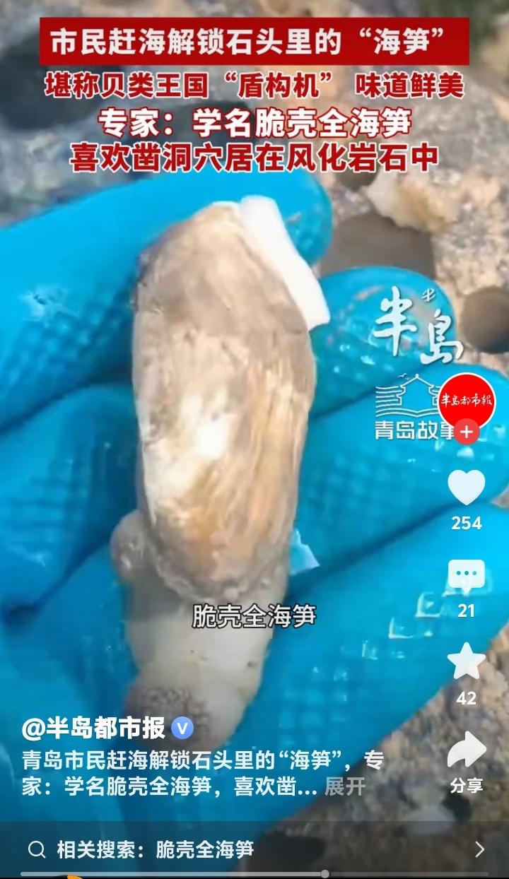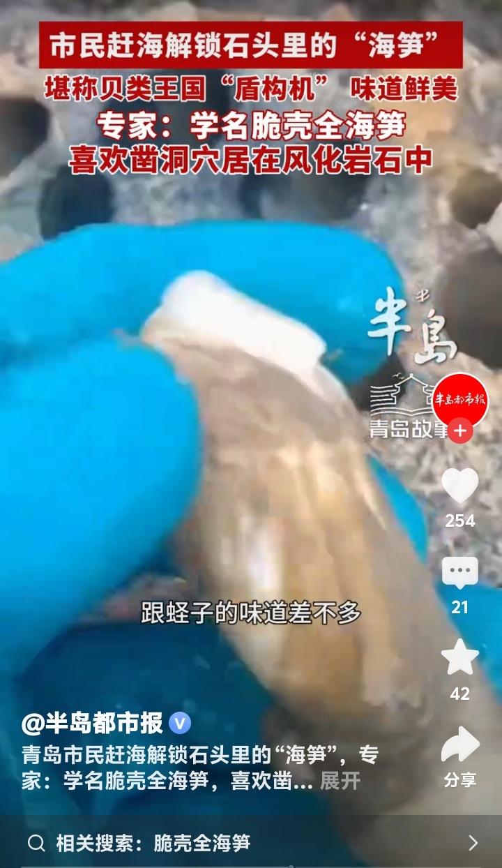 青岛即墨鳌山卫海边惊现“岩石蛏子王”!老渔民揭秘藏在石缝里的极致鲜甜,网友直呼:这才是赶海天花板! 赶海的乐趣,在于大海永不重复的盲盒惊喜。当别人还在沙滩上埋头苦挖蛤蜊时,青岛即墨鳌山卫的资深玩家们,已经将目光投向了那些布满孔洞的礁石。谁能想到,坚硬的岩石里,竟藏着让无数老饕魂牵梦萦的顶级鲜味。 近日,一位青岛市民在鳌山卫赶海时的意外发现,瞬间点燃了全网赶海爱好者的热情。那不是普通的蛏子,而是牢牢“长”在风化岩石孔洞里的神秘生物——脆壳全海笋。它用实力证明,真正的鲜美,往往需要一点探索和巧劲。 看着像蛏子,但它可比蛏子“有本事”得多。专家称它为贝类王国的“微型盾构机”,一生都在与岩石较量。凭借独特的外壳,它能一点点凿穿坚硬的岩石,为自己打造一个安全的家。每一块布满蜂窝状小洞的礁石,都可能是一座鲜活的“海鲜公寓”。 这种隐秘的生活方式,让它积累了与众不同的风味。尝过的人形容,其肉质极为脆嫩,入口鲜甜感瞬间迸发,带着海水最纯粹的咸鲜,滋味层次远超普通贝类。那是大海赋予岩石居住者的、浓缩的精华,是风浪洗礼后沉淀的至味。 发现它的陈女士说,感觉就像收到了大海的隐秘礼物。这份快乐,不在于收获多少,而在于那份“原来你也在这里”的奇妙邂逅。它打破了我们对赶海的固有想象,原来乐趣不止在沙泥之下,更在那些被我们忽略的石头缝隙里。 这小小的“海笋”,照见的正是我们内心深处对探索和发现的渴望。在按部就班的生活之外,我们总期待一点意外的惊喜,一点亲手挖掘的成就感。赶海如此,生活亦如此,最美的风景和味道,常常藏在不走寻常路的探索之中。 所以,下次当你漫步在海边,不妨多留意那些千疮百孔的礁石。拿起小铲,轻轻探寻,或许你也能解锁这份来自石头缝里的极致鲜美。大海的慷慨,永远留给那些愿意仔细观察、敢于动手尝试的人。 鳌山卫的这次奇遇,不仅是一次美味的发现,更是一场生动的自然课。它提醒我们,自然界的奥秘与馈赠无处不在,只要我们保有一份好奇与热爱,平凡的生活处处都有惊喜在等待挖掘。 (来源:综合自半岛都市报相关报道及网络资讯) 赶海奇遇 青岛美食