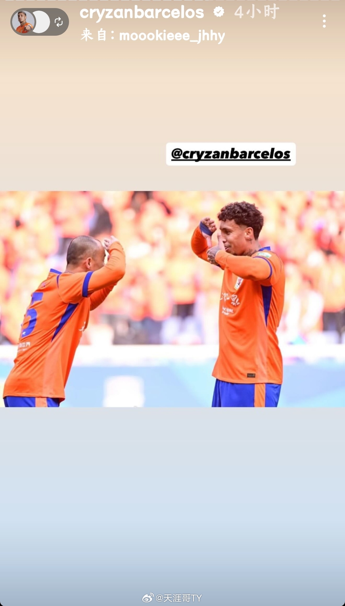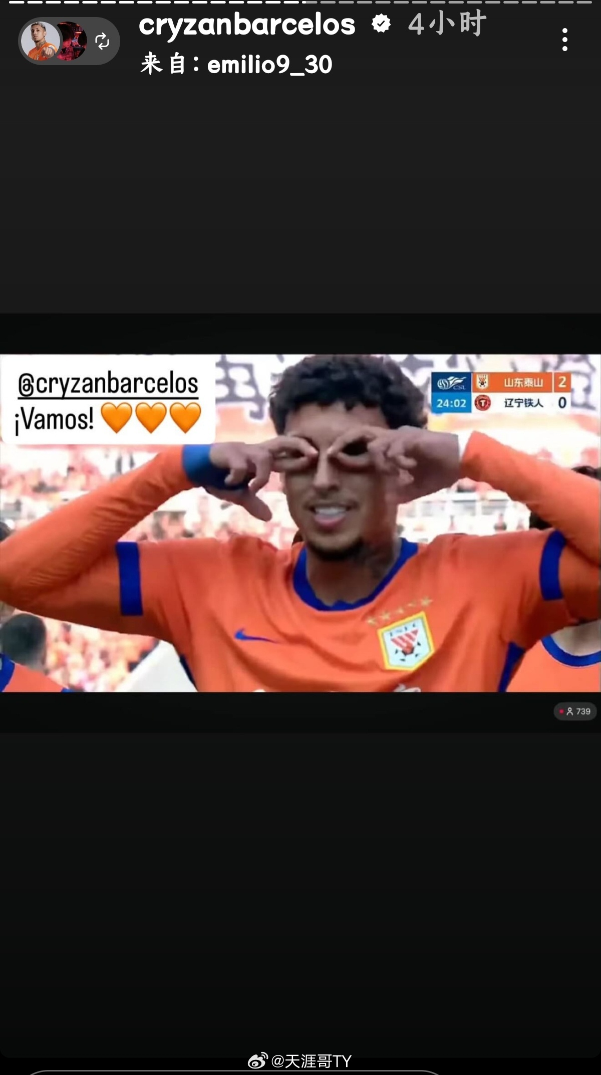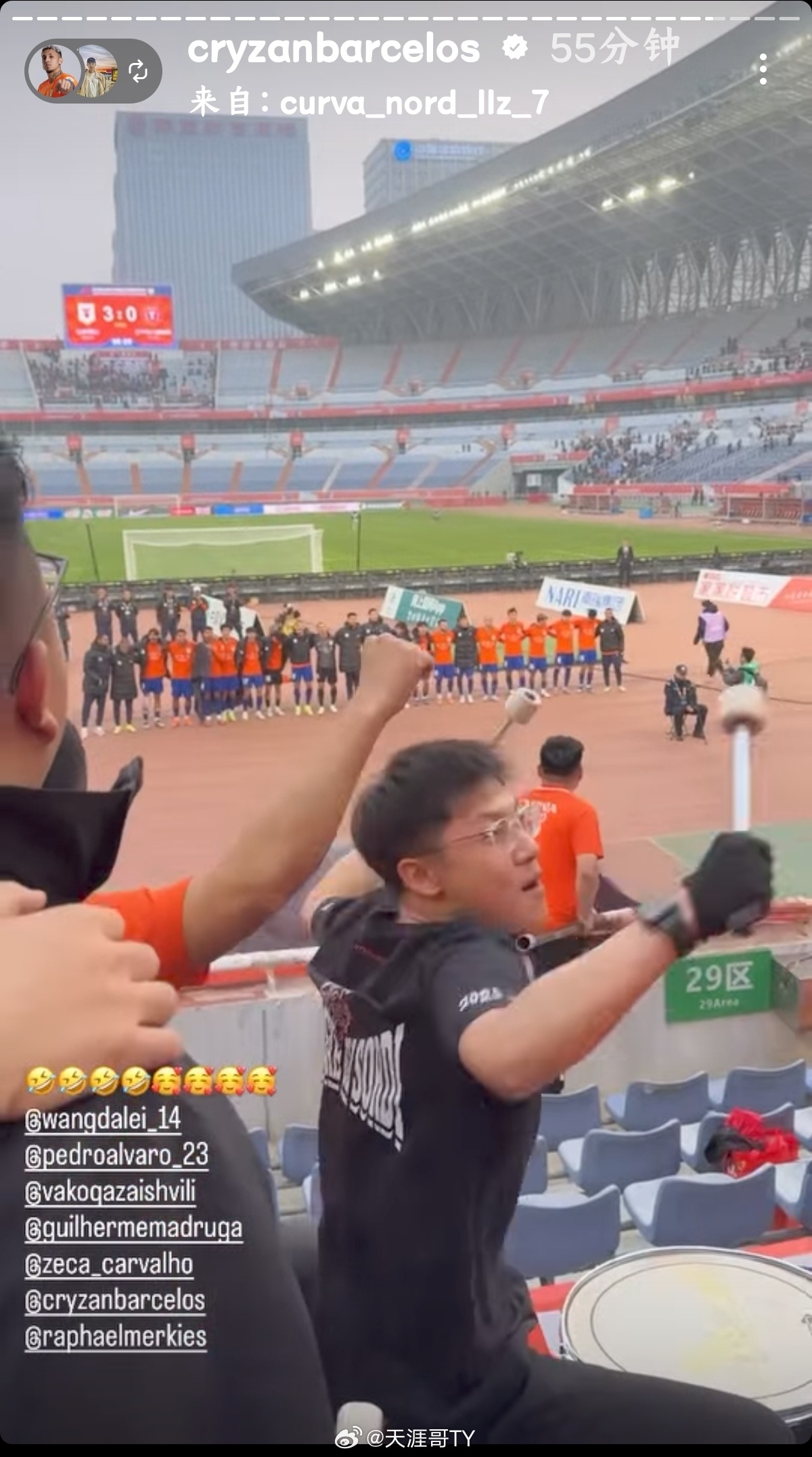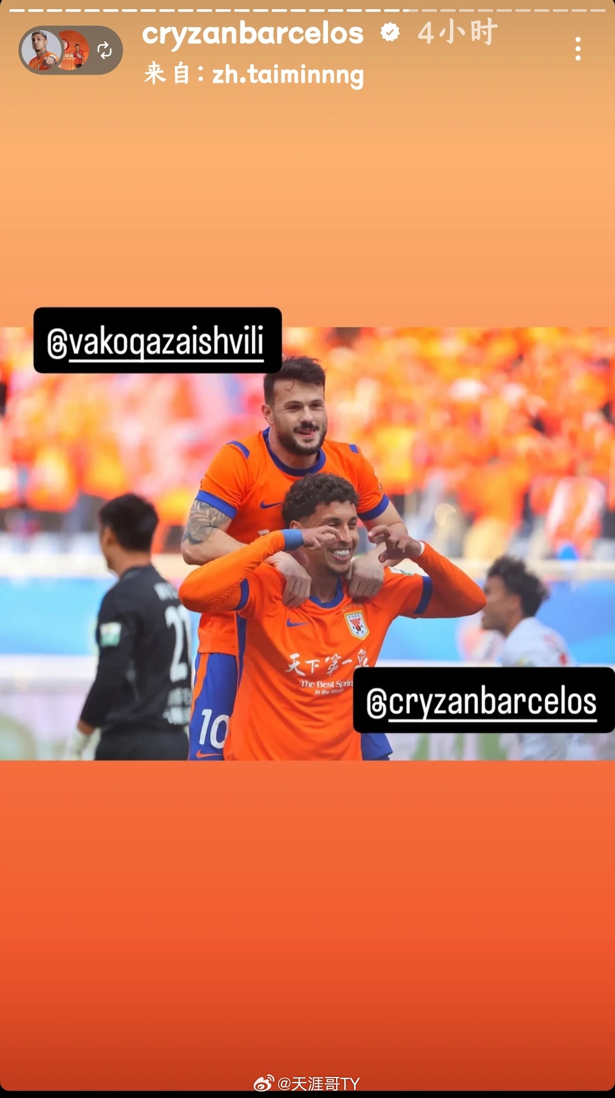 山东泰山/ 山东泰山外援动态 昨天赛后,克雷桑更新动态。看来对昨天自己表现还算满