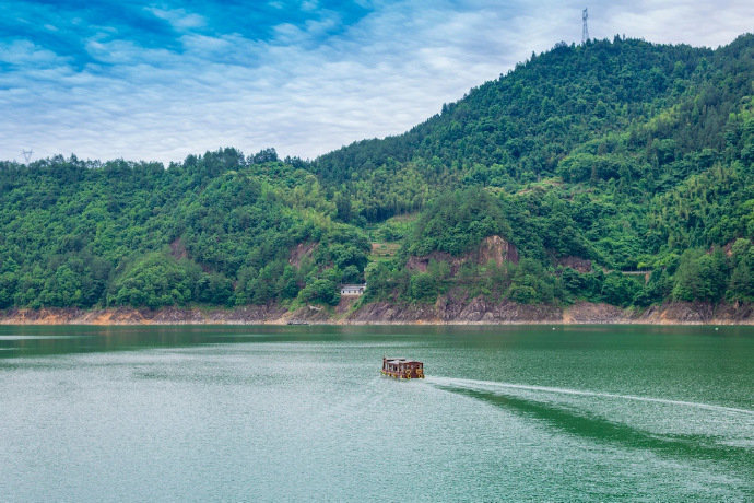 瀑布流水湖泊,景色很美,就像財源一樣滾滾而來。