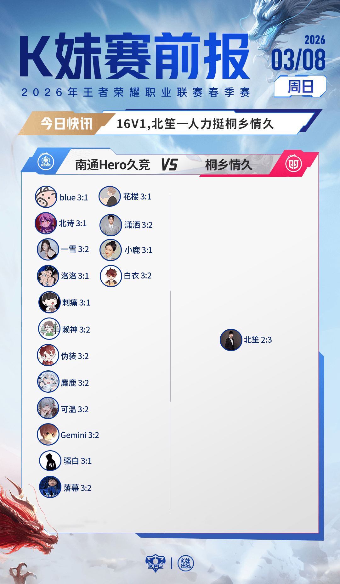 Hero对战情久:16V1,北笙一人力挺桐乡情久;