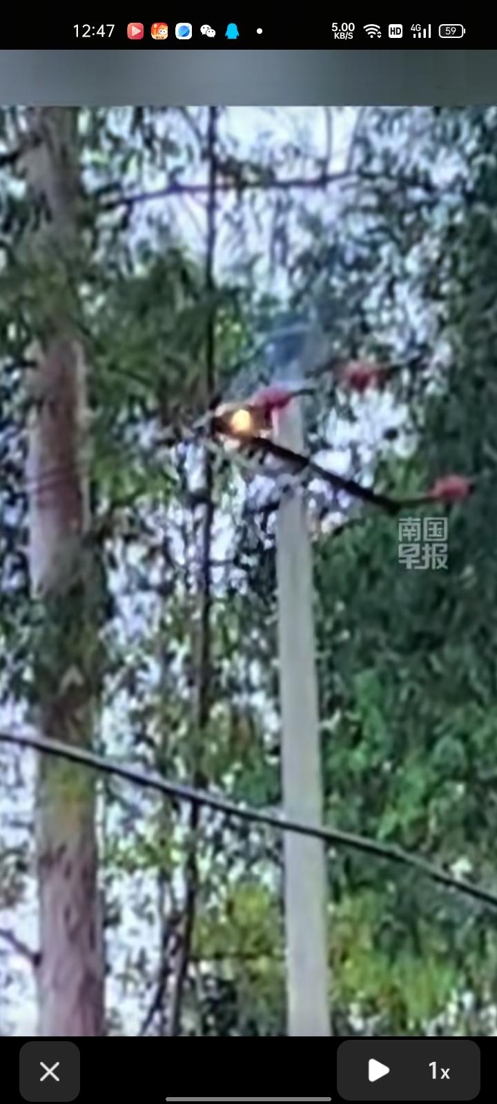 3月4日,广西南宁。狗狗对着电线杆一直叫,主人一开始不明所以,顺着狗狗的视线一看,才发现电线上冒着火星,赶紧联系供电部门来维修,给狗狗点个赞,发现的及时!