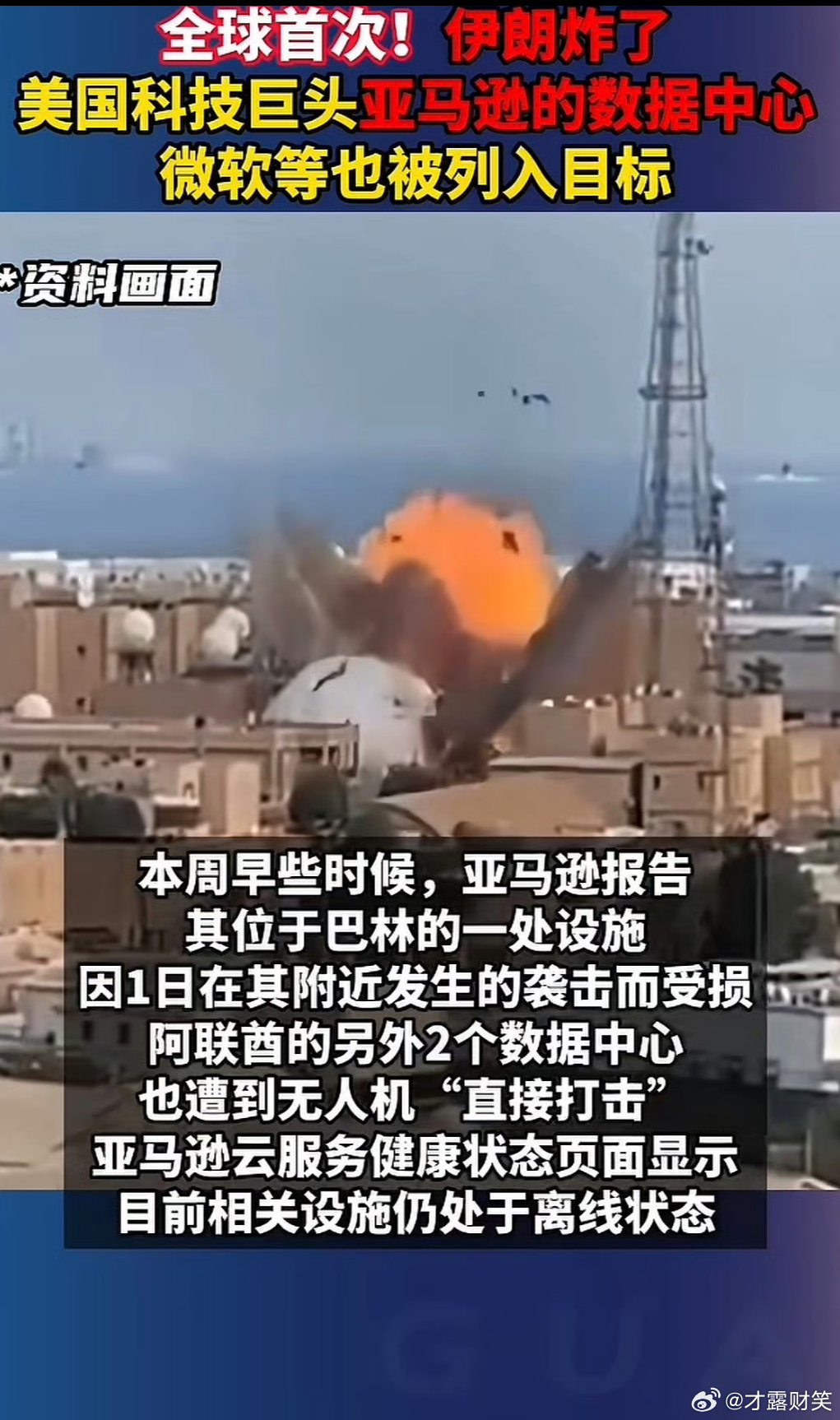伊朗炸了美国科技巨头数据中心伊朗革命卫队突袭巴林、阿联酋亚马逊数据中心,打响全球