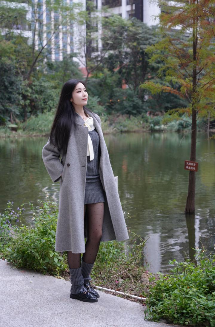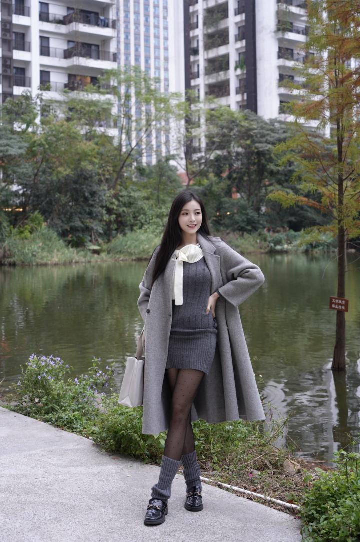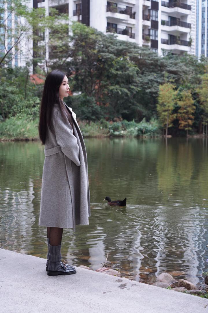 湖畔佳人立,风姿绰约间。