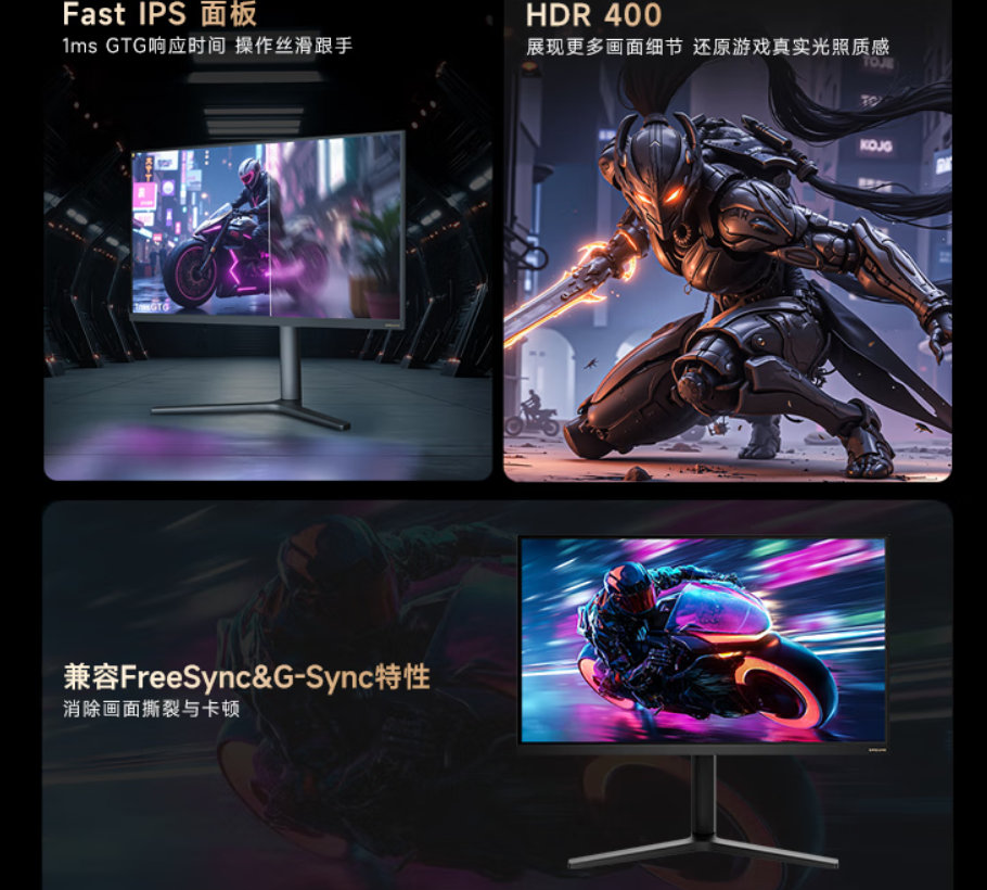 400nits峰值亮度通过VESA DisplayHDR 400认证,暗部细节与高光表现更出色。色彩方面,95% DCI-P3广色域与ΔE<2色准,兼顾游戏艳丽画面与专业设计需求。硬件低蓝光、无频闪及防眩光技术,有效缓解长时间用眼疲劳。支持AMD FreeSync与NVIDIA G-Sync双兼容,适配不同显卡玩家。双11到手1199元,叠加88vip会员还有更多优惠!