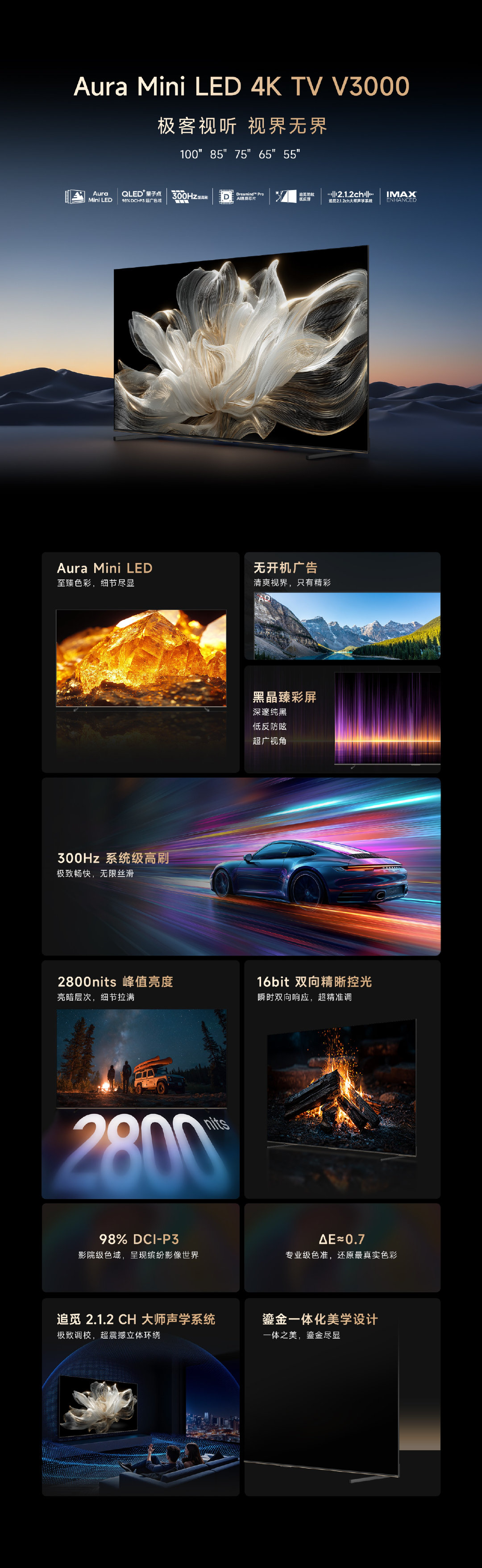 首先是备受瞩目的追觅V3000系列,作为这次第138届广交会焦点,瞄准国内高端市场将“全能”二字完美诠释。搭载核心“AuraMini LED臻彩显示方案”,融合QLED与Mini LED的双重优势。拥有10亿色显能力,色域覆盖高达98% DCI - P3,让影视剧中的渐变色过渡自然流畅,仿佛将真实世界搬到了屏幕上。