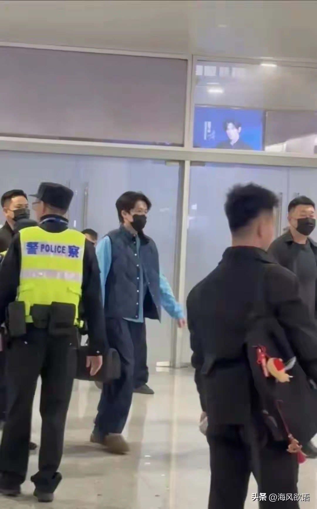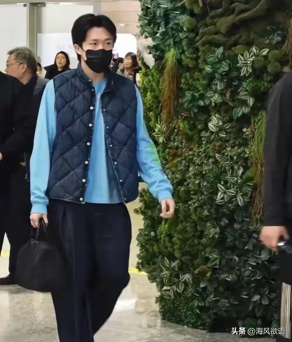 王楚钦抵达重庆,蓝色卫衣配马甲,清爽穿搭气质拉满