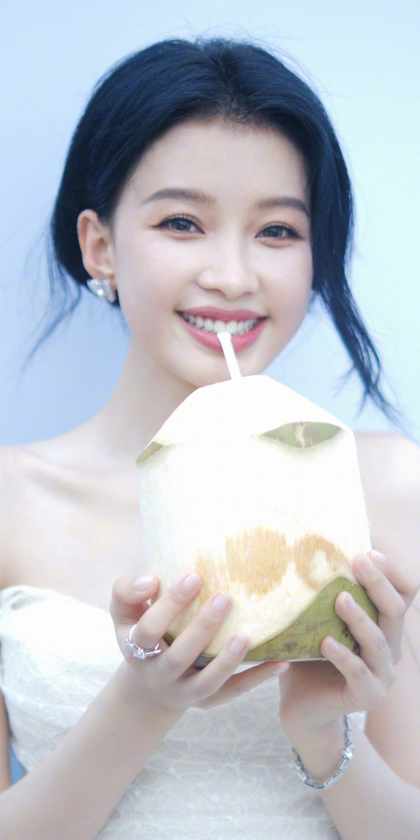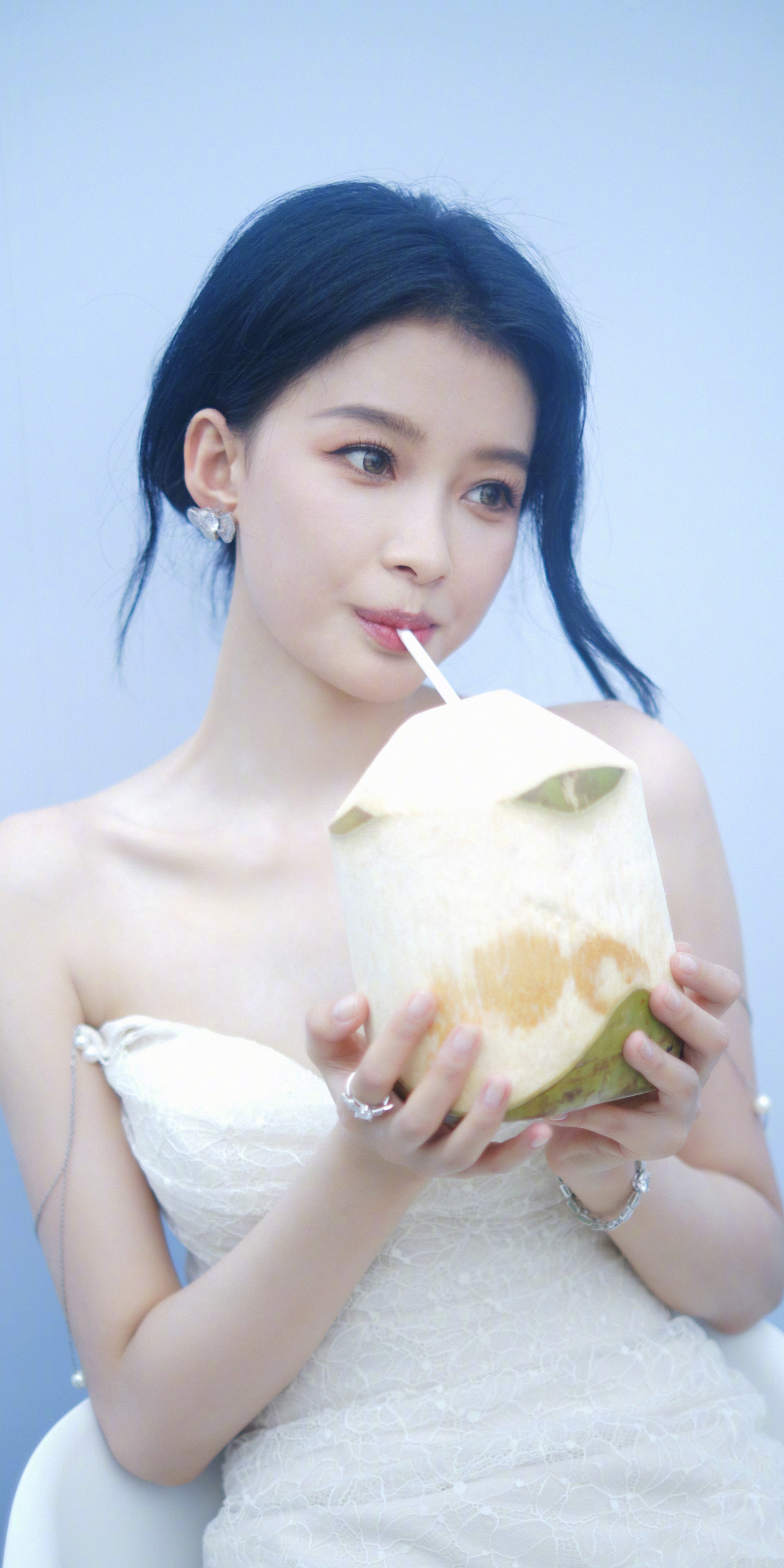 藕粉色抹胸裙、回眸一笑神秘魅惑——白鹿。每日明星美图分享