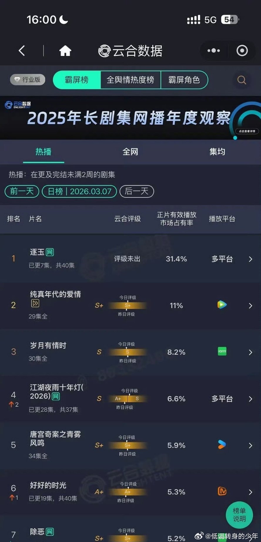 逐玉镜头美学张凌赫逐玉次日云合翻倍直接破30~31.4%恭喜🎉🎉🎉凌帝伟大