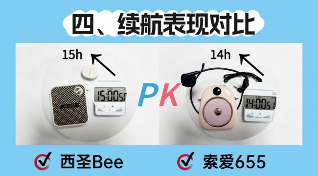 (2)索爱655头戴有线扩音器索爱655的续航表现呈现明显的两极分化,优势与短板同样突出。其头戴麦续航表现亮眼,满电可连续使用约14小时,适合对麦克风续航有极高需求的场景。但主机扩音器续航表现拉胯,仅能连续使用7小时,面对全天高强度扩音场景,很容易出现中途断电的情况,影响使用体验。五、综合性价比对比