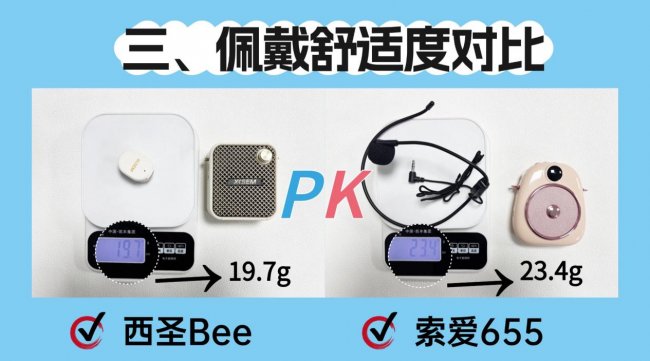 (1)西圣 Bee领夹扩音器西圣Bee在佩戴舒适度上直接拉满,将轻量化设计做到了极致。无线领夹麦克风仅20g,机身主机也只有165g,整体佩戴轻盈无感,完全没有负重感。领夹式结构贴合人体日常使用习惯,不压头顶、不勒耳廓,佩戴时贴合身形不易晃动,搭配稳固的夹扣设计,既牢靠又不硌肌肤,长时间讲课、带团、讲解都不会产生酸胀疲劳感,整体佩戴体验细腻又舒适,长时间使用依旧轻松自在。