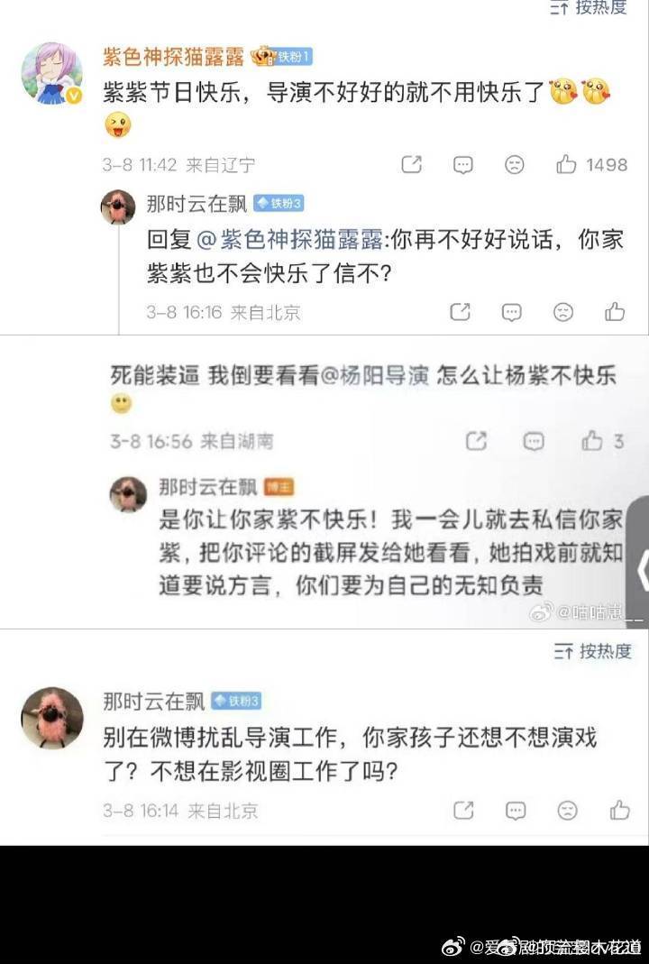 疑似玉兰花开君再来工作人员威胁女演员看文字真的有点像是剧组内部人员说的话,太精准了,杨阳导演还有互动,而且导演还把玉兰花开君再来的置顶给取消了,就真的挺玻璃心的。这些放着不论,就想说一句“知道要说方言和知道要全程用方言演戏是两码事”,玩文字游戏的话更加说明剧组故意坑演员,否则为什么不表述清楚?她知道晚上要吃晚饭,但这不代表她知道晚上要一直吃晚饭吃整晚整晚整晚的饭,整晚整晚整晚的吃饭。
