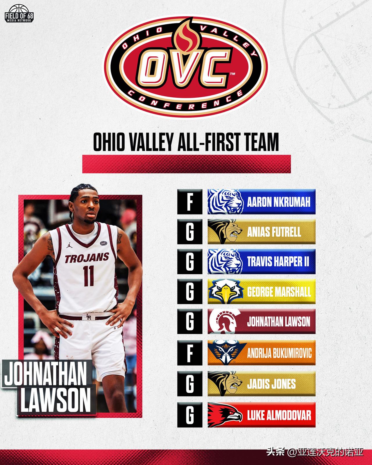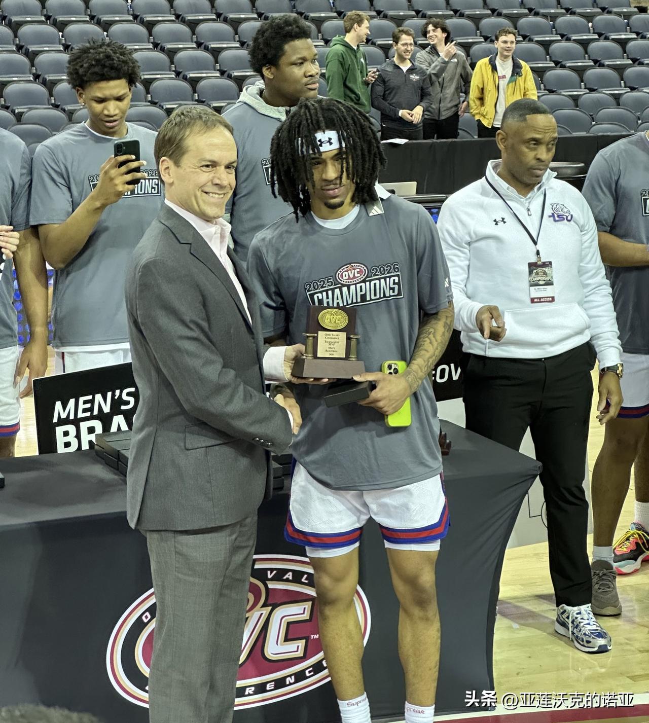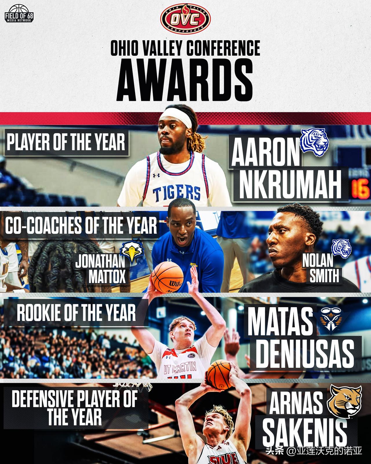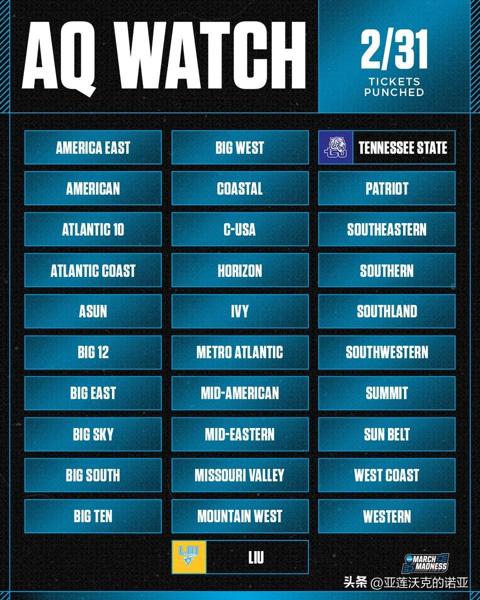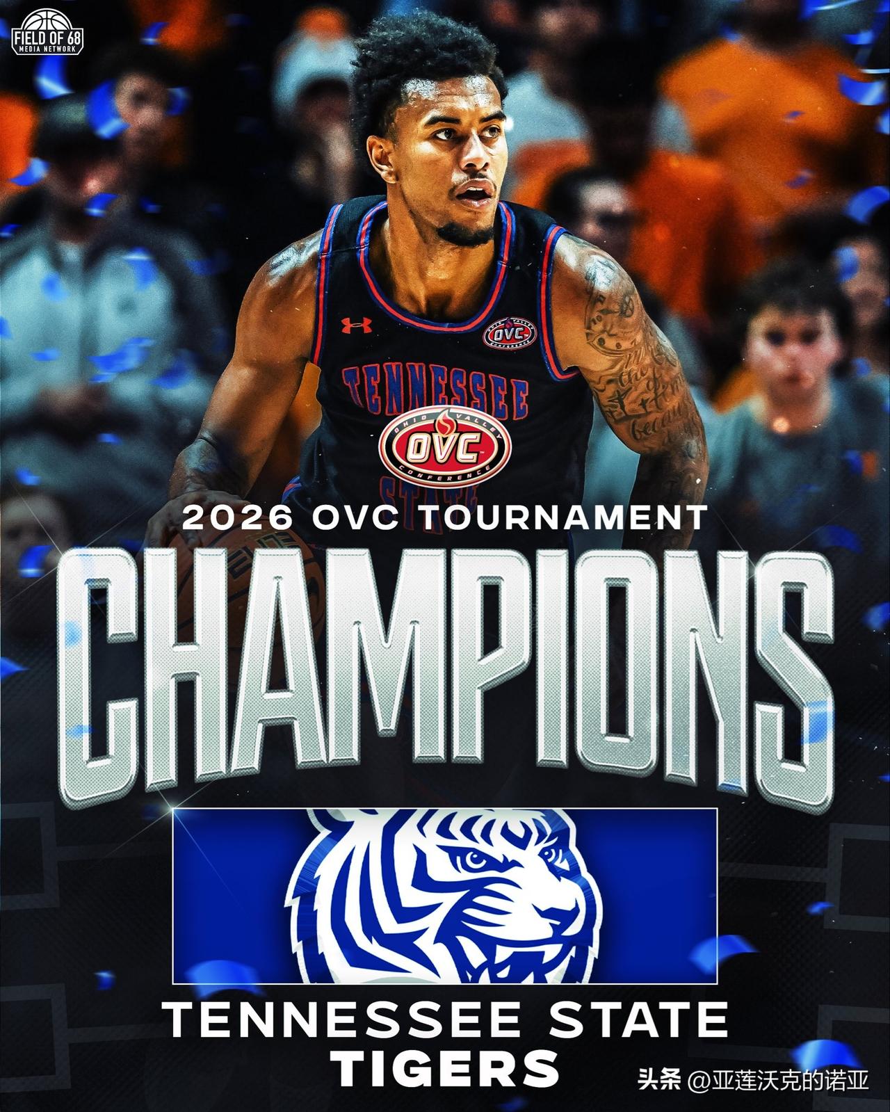 田纳西州立Tennessee State击败摩尔德州立Morehead State夺得OVC联盟锦标赛冠军,Nolan Smith作为主教练的第一年就带领球队自1994年以来首次参加疯狂三月 后卫Aaron Nkrumah是OVC联盟年度最佳球员,Dante Harris荣获OVC锦标赛MVP,他曾在2021年帮助乔治城夺得Big East锦标赛冠军。