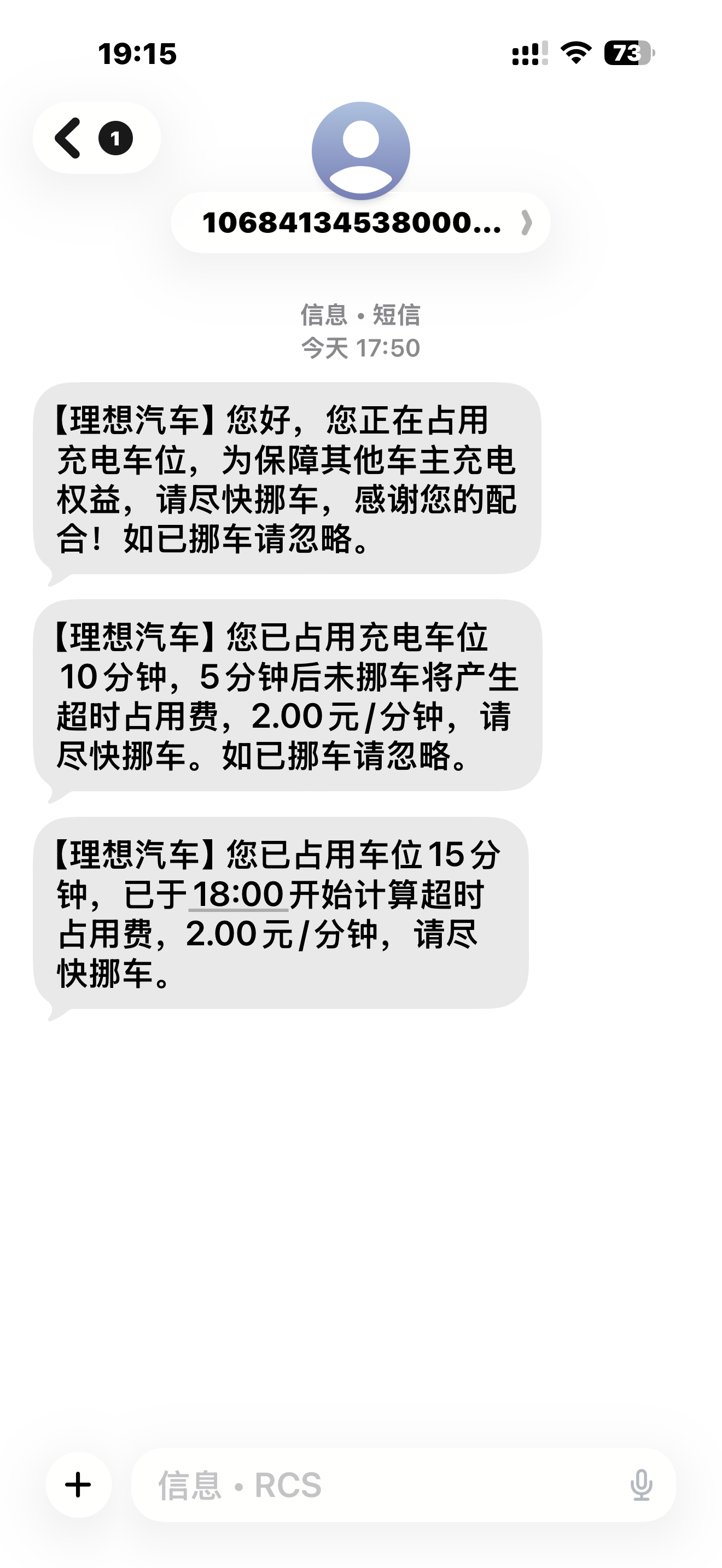 然后就电话和短信我占用位置要收超时费,吓得我美食都没拿就赶紧去挪车了