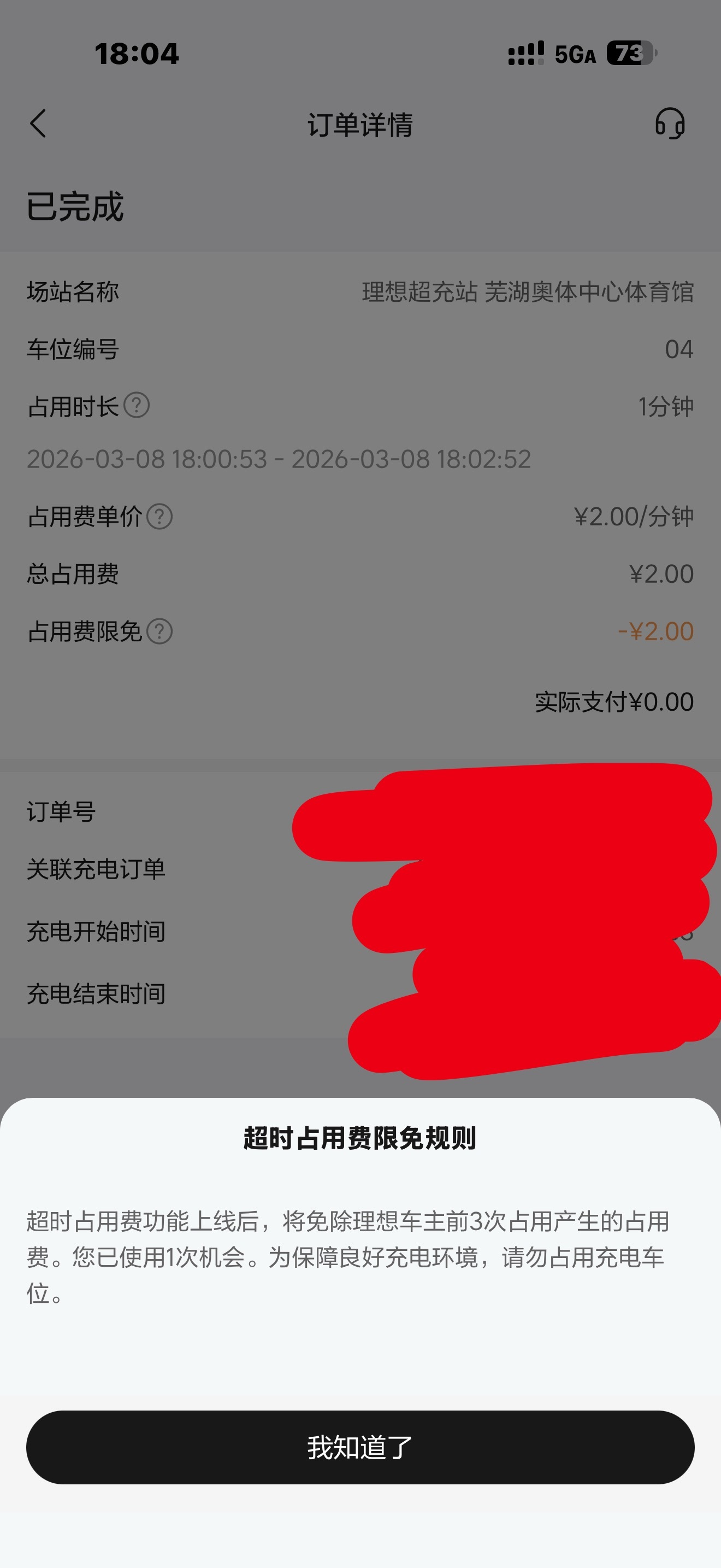 还好我是第一次,不用交钱,U1S1这功能挺好的,有效杜绝车辆占用充电车位,点赞!理想i6