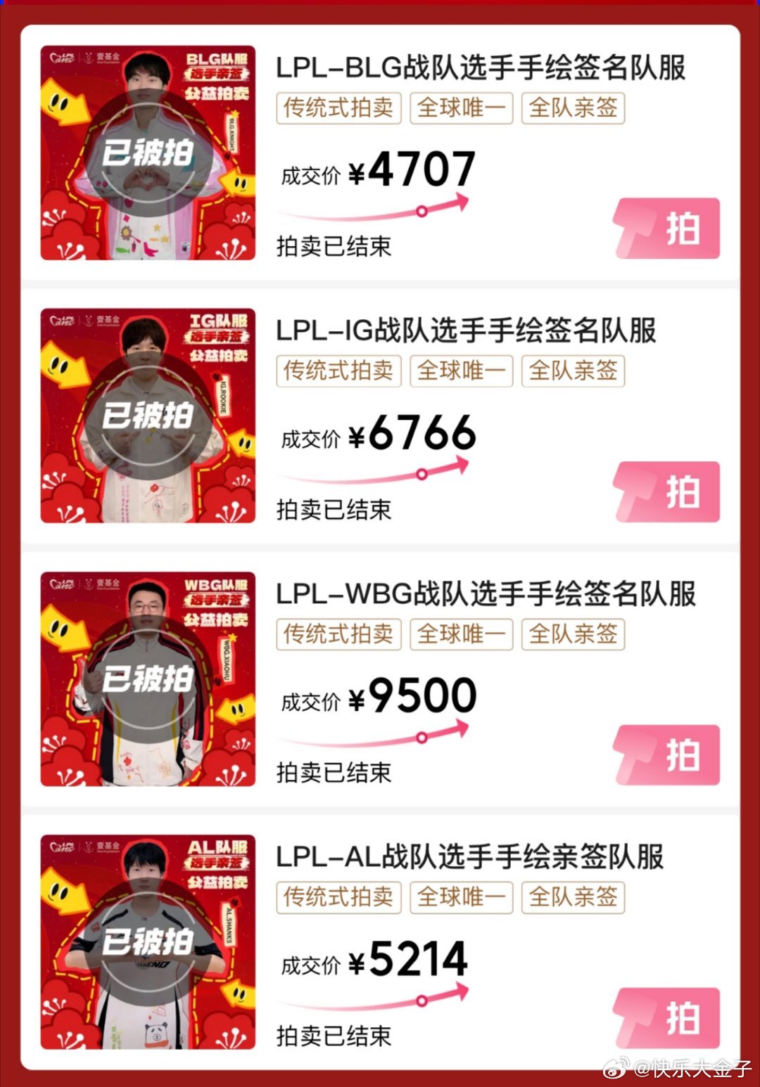 插播一条LPL公益竞拍,Xiaohu上身的全队签名队服拍了9500WBG英雄联盟