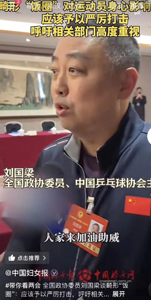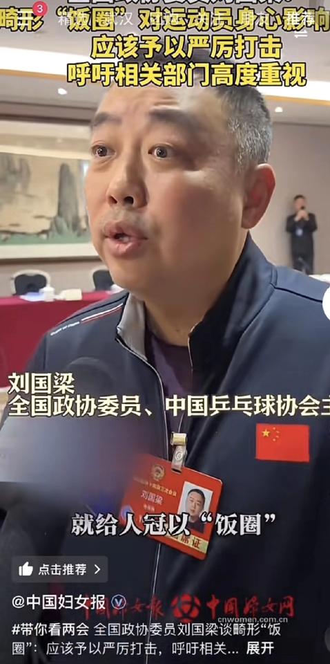 他虽然不在国乒,但是他每次出现都会有轰动。 这次他又引起轰动了。 他说了别人不敢说,不敢提的。 我们坚决抵制饭圈,但是不能把真正喜欢球员,热爱体育、支持体育,真正去现场加油助威的人归结为饭圈。要进行甄别。 对,什么是饭圈,打击畸形饭圈,但是也要保障真正粉丝的权益,不能伤了他们的心。