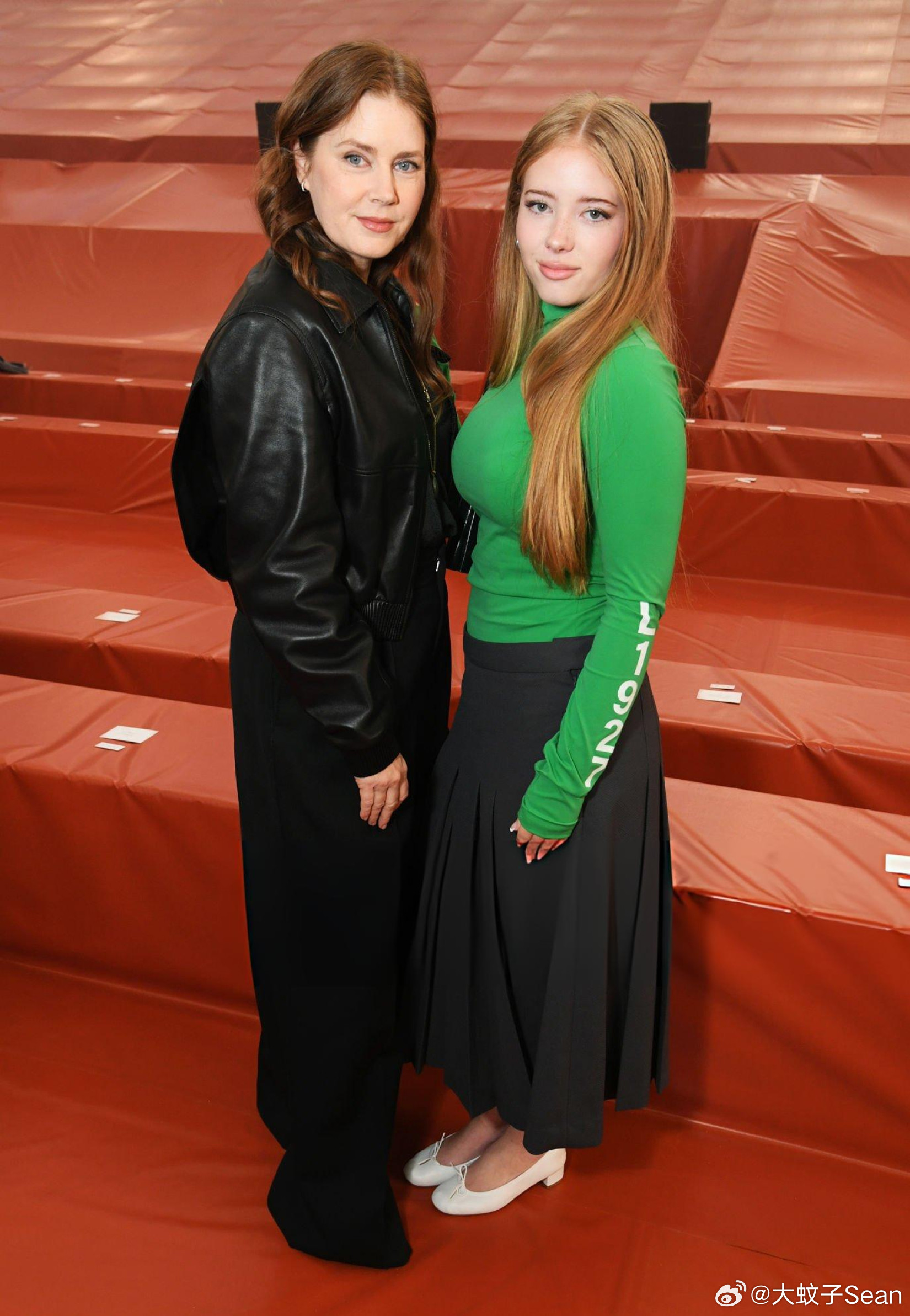 amy adams艾米亚当斯在巴黎时装周期间出席观看Lacoste品牌的时装周,AA还带上15岁的闺女Aviana亮相秀场前排
