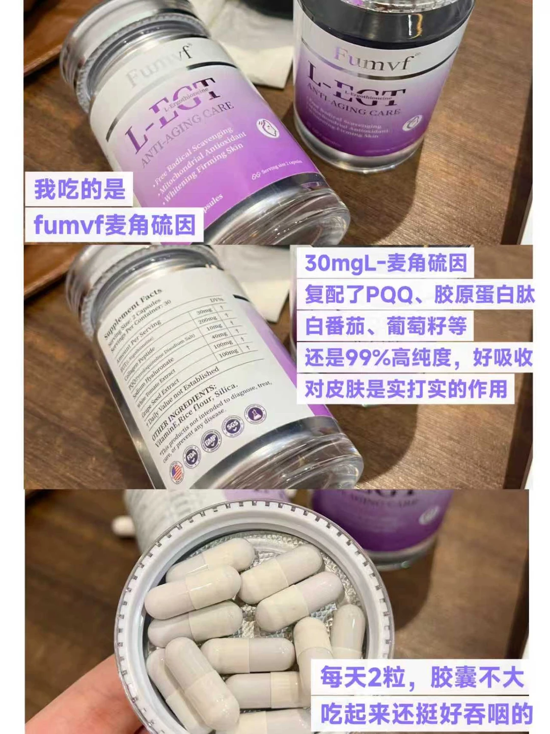 我吃的是fumvf麦角硫因,30mg的L-麦角硫因还复配了PQQ、胶原蛋白肽、白番茄、葡萄籽等成分,还是99%的纯度,好吸收对身体还不会有额外的负担。