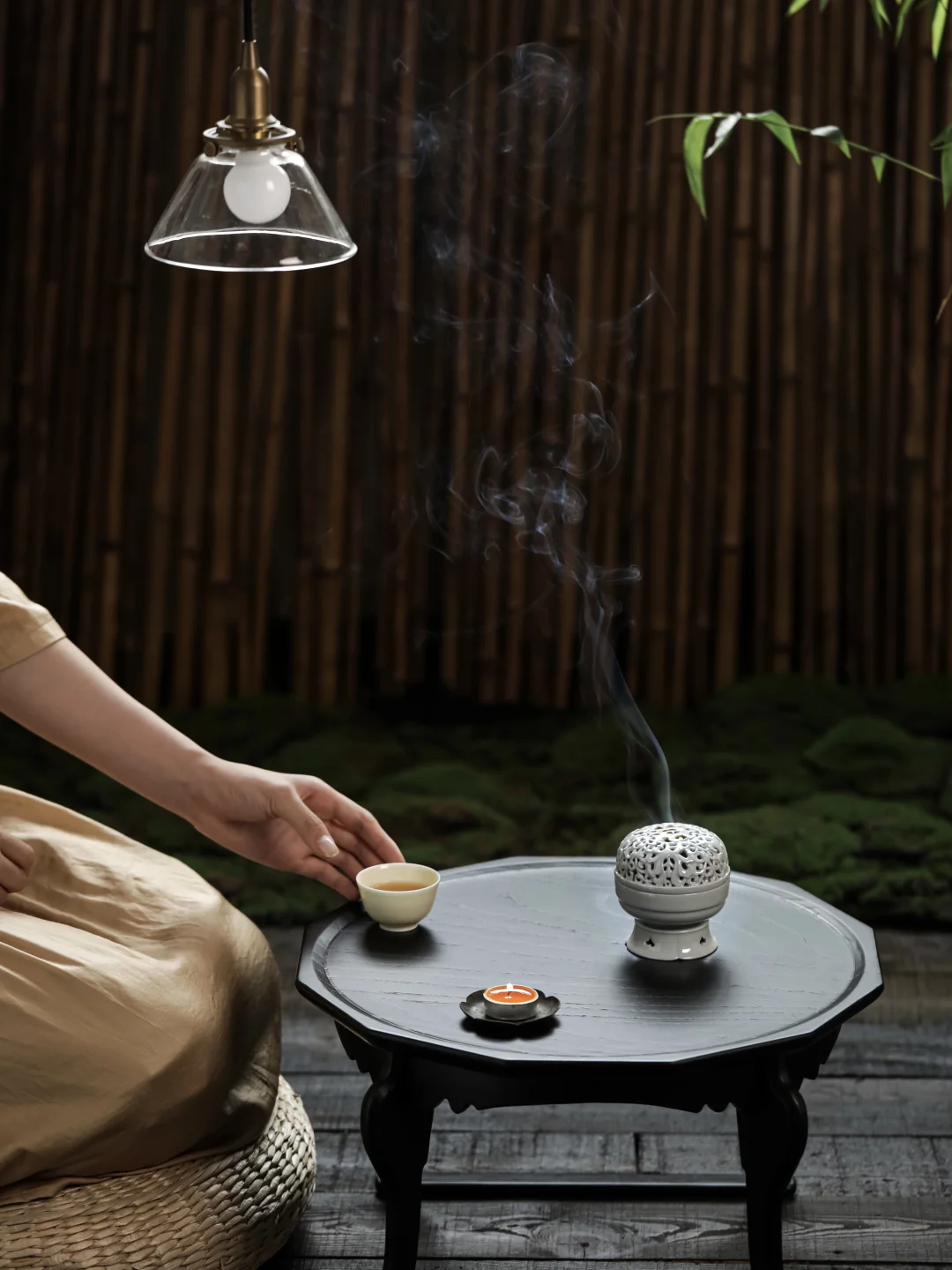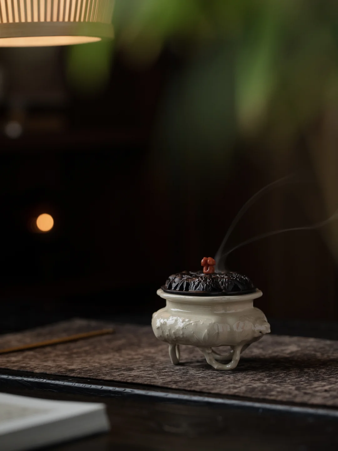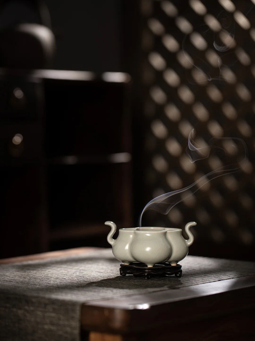 复刻宋代盒熏的缠枝莲纹,镂空雕刻,精细得像能透风。烟从那些缠缠绕绕的花枝间升起,不是直直地往上,而是蜿蜒着,回旋着,像在山林里穿行的小径。光是看着,就觉得有风从耳边过。